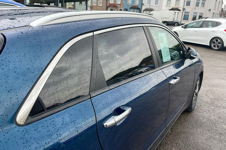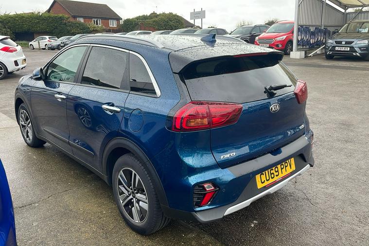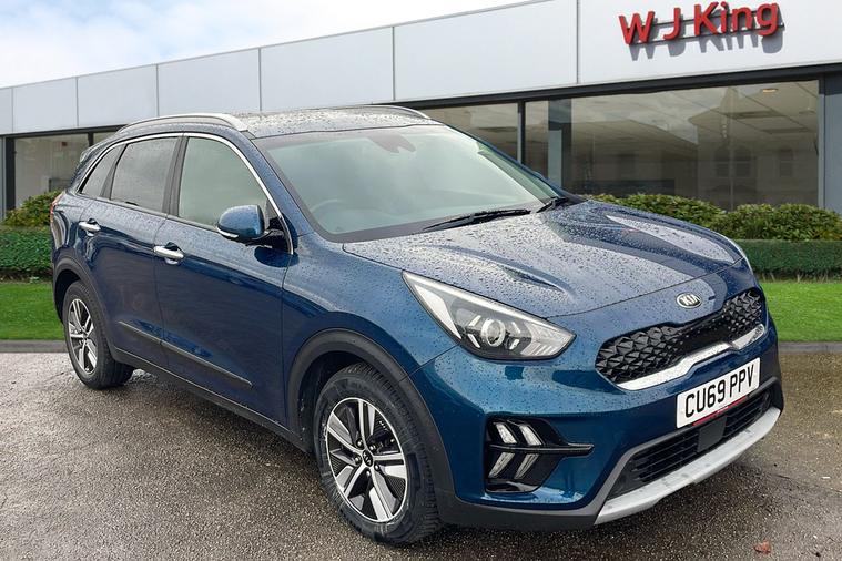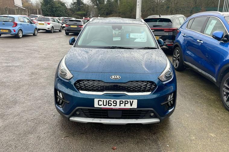 Discover the 2019 Kia Niro Self-Charging Hybrid, a used SUV that expertly blends efficiency and style. Presented in an attractive blue finish, this hybrid offers seating for five and an automatic transmission for a smooth drive. Take advantage of impressive fuel economy, with up to 58.9 mpg (combined), making it an ideal choice for both urban commutes and longer journeys. With a capable 1.6-litre hybrid engine producing 139 bhp, it accelerates from 0 to 62 mph in 11.1 seconds and boasts a top speed of 101 mph. Practicality shines through with five doors and a generous boot space that expands from 382 to 1380 litres. Registered in September 2019 and with only one previous keeper, this Kia Niro also meets Euro 6 emissions standards, making it ULEZ compliant for hassle-free driving in low emission zones.
