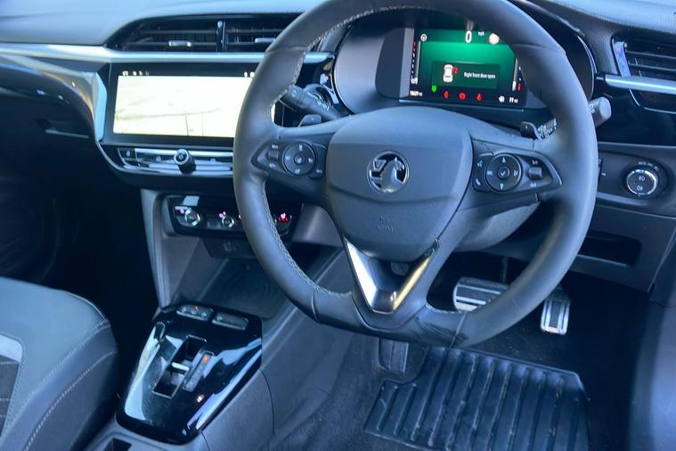 Presenting a 2023 Vauxhall Corsa Ultimate, finished in striking metallic Quartz grey. This used hatchback offers a refined automatic drive, paired with a 1.2 Turbo petrol engine delivering up to 130 mph. With an impressive combined fuel economy of 49.6 mpg, its both fun and economical. Registered in June 2024, it features five doors and seats for five, making it ideal for urban journeys or family trips. Standout details include diamond-cut gloss black 17-inch alloy wheels and bold sports styling, enhancing its modern presence. The Corsa Ultimate also brings advanced features like a 7-inch digital instrument cluster, IntelliLux LED Matrix headlights, adaptive cruise control, and a panoramic 180-degree rear-view camera. With enhanced comfort from massage and lumbar support in the driver’s seat, plus dark tinted rear windows, it blends style and practicality. Proudly ULEZ compliant, this Corsa is perfect for stress-free city driving.