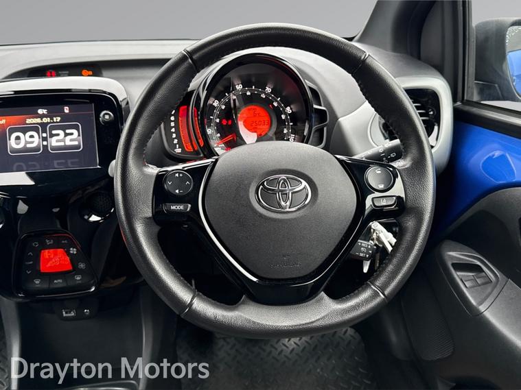 Here we have a fantastic opportunity to purchase a stunning Toyota Aygo 1.0 Vvt I X Trend Hatchback 5dr Petrol Manual Euro 6 (s/s) (71 Ps).Finished in the striking Blue Burst with Black Paint, this fantastic Toyota Aygo benefits from only having one previous keeper and is clear to see that it has been the previous owners pride and joy! Coming with a fantastic array of standard specification including a 7in x-touch Multimedia System, DAB Digital Radio, Front 12V Power Outlet, Auto Headlights, Daytime Running Lights - LED and Rear LEDs, Analogue Tachometer, Data Communication Module, Reversing Camera, Tyre Pressure Warning System, Smartphone Integration - Powered by Pioneer, USB and Aux Connection and much more besides too! With the ability to upgrade from our standard 6m Warranty to a 12m Premium Warranty (including Breakdown & Recovery) for just £499, give us a call to discuss the purchase of this amazing car before its too late!