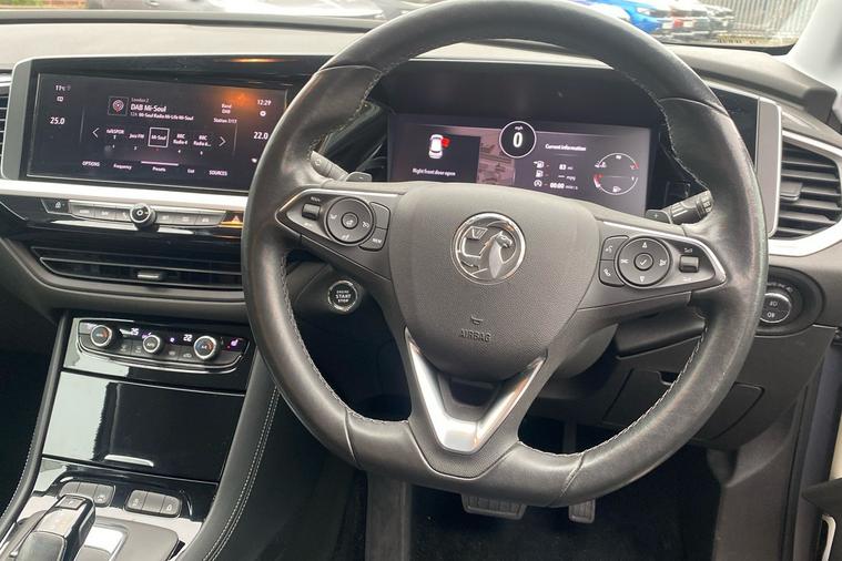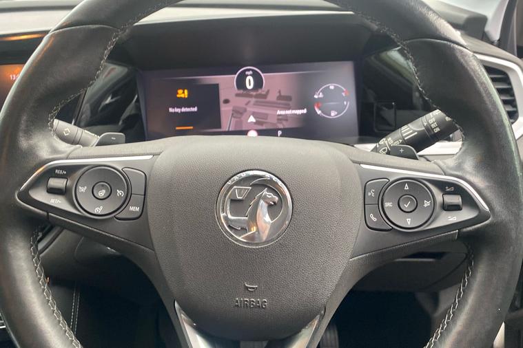 Introducing the 2021 Vauxhall Grandland Elite, a stylish SUV finished in striking two coat metallic Graphic Grey. With just one previous keeper and registered in September 2022, this car delivers a refined driving experience and practical versatility. The smooth automatic transmission is paired with a 1.2-litre turbocharged engine, producing 128 hp for confident performance, reaching up to 121 mph. Enjoy up to 44.1 mpg combined for efficiency on every journey. The Grandland Elite boasts an expansive boot offering up to 1, 652 litres of load space with the seats folded, perfect for family trips or larger loads. Advanced features such as Adaptive IntelliLux LED Pixel Headlights, a 180-degree rear-view parking camera, heated ergonomic front sports seats, and a power tailgate with foot sensor improve comfort, safety and convenience. This Grandland is ULEZ compliant, making city driving hassle-free. Experience the perfect blend of sophistication and everyday usability.