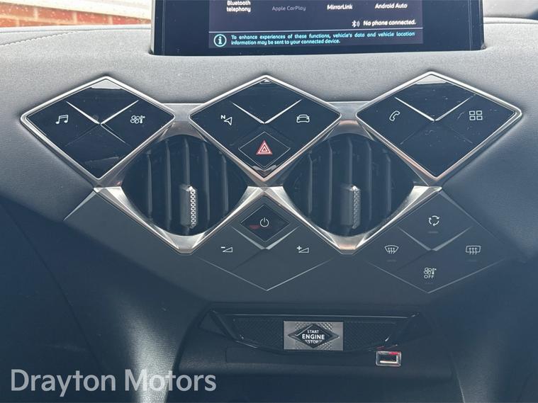 This 2022 DS 3 CROSSBACK E TENSE Bastille offers exceptional provenance with only one owner and remarkably low mileage of just 9176 miles. As an electric vehicle, it boasts a 50 kWh battery providing a maximum range of 232 miles when new. Charging is convenient, with a full charge at home taking approximately 7 hours and 30 minutes using a 7kW charger, while rapid public charging can achieve 80% capacity in as little as 30 minutes. This Bastille trim level comes equipped with Mirror Screen featuring Android Auto and Apple CarPlay, Automatic Air Conditioning, Bluetooth Handsfree and Media Streaming, Automatic Headlights, and Rear Parking Sensors.The DS 3 CROSSBACK E TENSE Bastille stands out with its advanced technology and efficient electric performance. The inclusion of Android Auto and Apple CarPlay allows for seamless integration of your smartphone, enhancing your driving experience. Automatic Air Conditioning ensures a comfortable cabin environment regardless of the outside temperature, while Automatic Headlights provide added convenience and safety. The Bluetooth connectivity makes handsfree calls and media streaming effortless. These features, combined with the vehicles electric powertrain and low mileage, position it as a superior choice for those seeking a modern, well equipped, and economical vehicle.