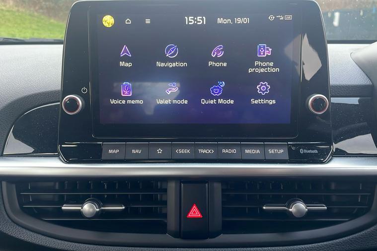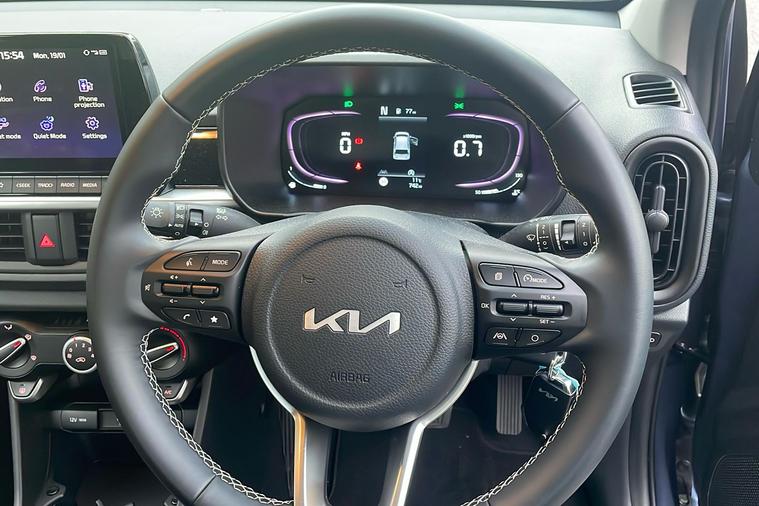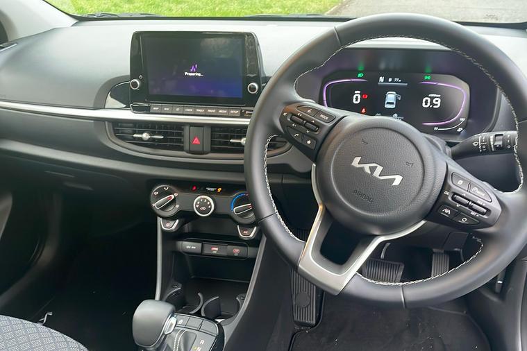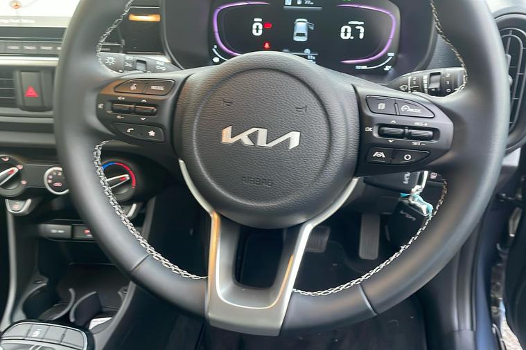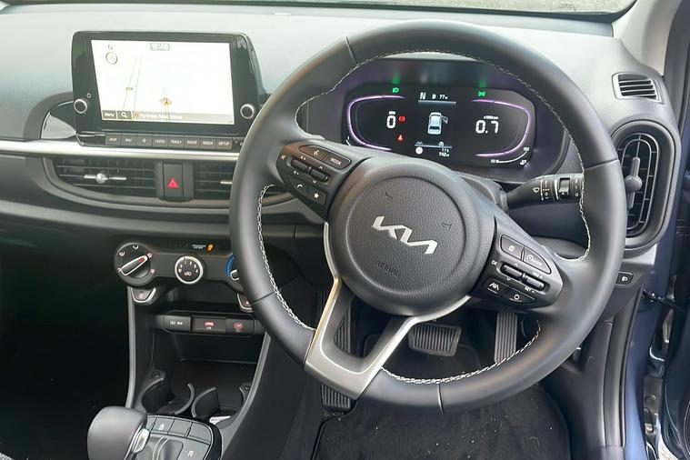 Experience modern city driving with this stylish 2024 Kia Picanto in striking blue. Offering easy automatic driving and impressive combined fuel economy of 54.3mpg, this compact five-door hatchback is designed for both convenience and practicality. Enjoy a spacious interior with flexible 60:40 split-folding rear seats and a generous boot capacity up to 1, 010 litres when needed. Stay connected and on track with the intuitive 8-inch touchscreen featuring satellite navigation, Apple CarPlay, and Android Auto. Safety is a priority with features such as lane keep assist, forward collision avoidance, and rear parking sensors. Enjoy peace of mind with rain sensing wipers and a reversing camera system for added confidence in all weather. This Picanto meets ULEZ requirements, ensuring you can drive through clean air zones without worry. A perfect blend of practicality and modern technology, ideal for daily journeys and weekend adventures alike.