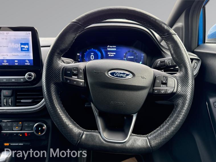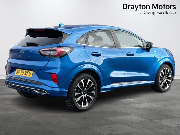 Having arrived in to stock with us in part exchange, we are proud to present for sale this fantastic Ford Puma ST-Line 1.0t Ecoboost Vignale Suv 5dr Petrol Dct Euro 6 (s/s) (125 Ps). Finished in the striking Desert Blue Metallic Paint, this fantastic Ford Puma ST-Line benefits from a Full Service History and is clear to see that it has been the previous owners pride and joy! Coming with a fantastic array of standard specification including a B&O Premium Audio System and Ford SYNC 3 Navigation, Wireless Charging, Cruise Control - Lane Keeping Aid and Lane Departure Warning, Front Parking Sensors, Pre-Collision Assist with Autonomous Emergency Braking and Pedestrian-Cyclist Detection, Heated Front Seats, Heated Steering Wheel, ABS - Anti-lock Braking System, Electronic Stability Control - ESC with Traction Control and Emergency Brake Assist - EBA, Emergency Brake Warning - Automatic Hazard Warning Lights, First Aid Kit Strap, Keyless Entry Rear Parking Sensors and much more besides too! With the ability to upgrade from our standard 6m Warranty to a 12m Premium Warranty (including Breakdown & Recovery) for just £499, give us a call to discuss the purchase of this amazing car before its too late!