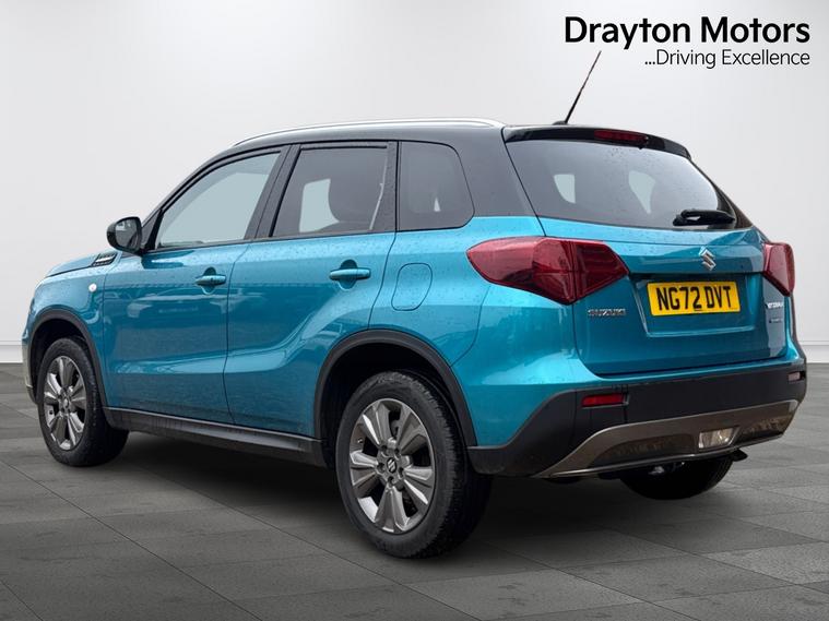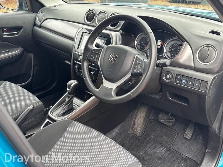 This 2023 Suzuki Vitara SZ T presents a superb ownership proposition, having had only one owner since new. This popular compact SUV is powered by an efficient 1.5 litre petrol hybrid engine, meeting Euro 6 emission standards. Inside, youll find the Smartphone Linkage Display Audio system, compatible with both Android Auto and Apple CarPlay, alongside integrated Bluetooth for seamless connectivity. Comfort is assured with automatic air conditioning, and parking is made easier thanks to the rear parking camera. The vehicle also features automatic headlamps, which switch on when needed.The Suzuki Vitara SZ T stands out with its impressive fuel economy, achieving a highlight of 54 miles per gallon, demonstrating its efficiency compared to other vehicles in its class. Furthermore, its low insurance group rating and low CO2 emissions indicate that running costs are kept to a minimum, making it an economical choice for many drivers.