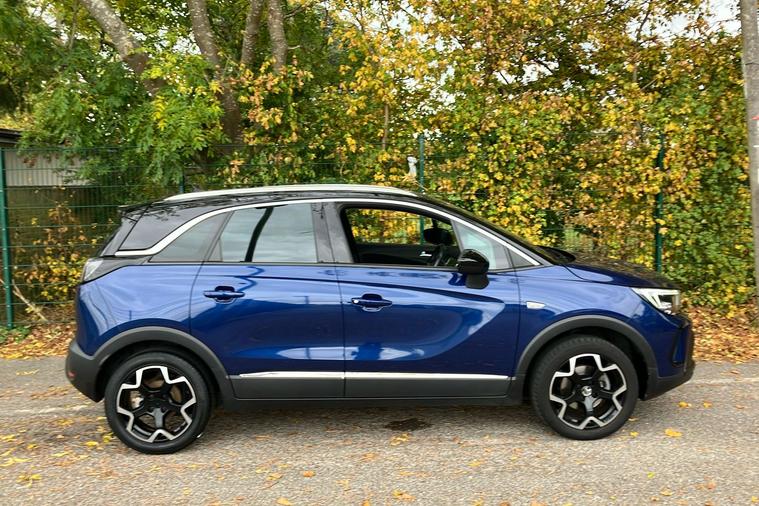 Presenting the Vauxhall Crossland Ultimate, finished in sophisticated metallic navy blue. Registered in September 2022 and in used condition, this stylish SUV combines spacious comfort with an efficient automatic drive. The 1.2-litre turbocharged petrol engine delivers 128 bhp, achieving 0-62 mph in 9.9 seconds and reaching a top speed of 123 mph, while returning a combined fuel efficiency of 44.8 mpg. With a generously sized boot providing 410 litres of space, expanding to an impressive 1255 litres, there’s ample room for all your adventures. Seating for five, five doors for easy access, and a striking bi-colour design ensure both practicality and presence on the road. ULEZ compliant for driving in low emission zones, the Crossland Ultimate offers an appealing blend of performance, space, and modern style for today’s busy lifestyles.