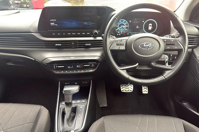 Presenting a used 2021 Hyundai Bayon Premium, a sleek SUV finished in striking Pearl Phantom Black with a pearlescent sheen. With a Manufacturers warranty until September 2027 This mild hybrid model offers a smooth automatic drive, delivering up to 53.3mpg combined from its efficient 998cc engine. Accommodating five passengers comfortably, it provides a generous 334 litres of boot space, which expands to 1, 205 litres when the seats are folded—ideal for all your journeys. With a maximum speed of 115mph, the Bayon balances performance with everyday practicality. Registered in September 2022 and with only one previous keeper, it has been well cared for. This vehicle is also ULEZ compliant, making it perfect for city driving without compromise. Enjoy a combination of great looks, practicality and excellent fuel efficiency with this stylish hybrid SUV.