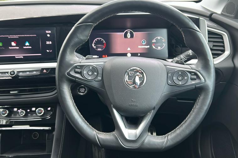 This 2021 Vauxhall Grandland Ultimate in Arctic White offers an attractive combination of practicality and contemporary style. With just one previous keeper since its registration in November 2023, this automatic SUV delivers a smooth drive, featuring a petrol engine with 128 bhp and an impressive combined fuel efficiency of 44.1 mpg. It can accelerate from 0 to 62 mph in 10.3 seconds and has a top speed of 121 mph. The spacious interior provides seating for five and a generous boot capacity of up to 1, 652 litres with the seats folded down. Standout features include 19-inch diamond-cut alloy wheels, 360-degree panoramic parking camera, adaptive IntelliLux LED pixel headlights, heated ergonomic sports seats, and a premium leather-effect interior. This Grandland is compliant with Euro 6 standards, making it a great choice for those seeking reliability, comfort, and versatility in a modern SUV. ULEZ compliant.