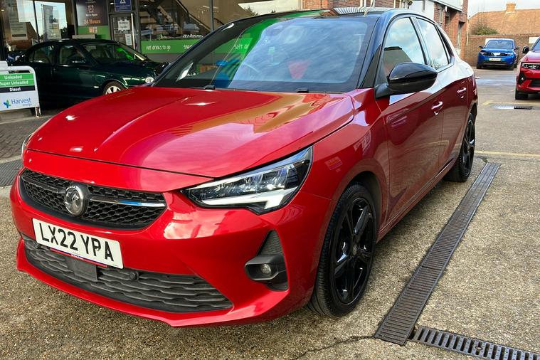 Presenting this used Vauxhall Corsa GS Line in striking red, first registered in August 2022. Effortlessly combining style and practicality, this five-door hatchback features smart 17-inch black alloy wheels, sports styling, and distinctive black accents to give it a dynamic, modern look. The efficient 1.2-litre turbo petrol engine delivers a combined fuel consumption of 57.6 mpg, reaching up to 121 mph and accelerating from 0 to 62 mph in just 9.3 seconds. With comfortable seating for five and a flexible boot capacity of up to 1, 118 litres with the seats folded, it provides impressive space for both passengers and luggage. Enhanced safety comes from systems such as Lane Departure Warning, Automatic Emergency Braking with Pedestrian Detection, and Rear Parking Sensors. This Vauxhall Corsa is fully ULEZ compliant, making it an excellent choice for urban and city driving.