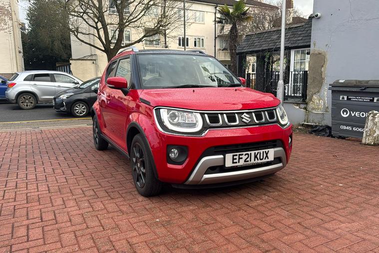 Introducing this used Suzuki Ignis SZ5 in striking red, first registered in June 2021. Perfect for city and suburban driving, it combines the benefits of a mild hybrid system with an automatic transmission, delivering efficient motoring and a smooth driving experience. With an impressive combined fuel economy of 52.3 mpg and a maximum speed of 96 mph, this practical hatchback is both economical and agile. It features four individual sliding rear seats, a flexible boot capacity ranging from 260 to 1, 100 litres, and convenient 5-door access, making it a versatile choice for daily life. The car includes useful technology such as a rear parking camera and a navigation system, keeping you connected and confident on the road. Only one previous keeper has owned this vehicle. Best of all, it meets Euro 6 standards, meaning it is ULEZ compliant for driving in Londons Ultra Low Emission Zone.