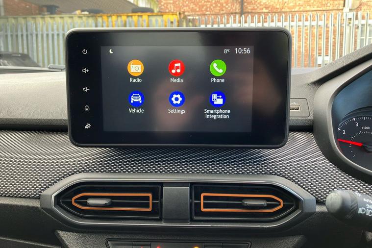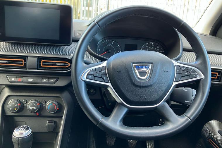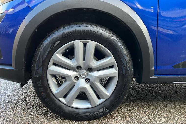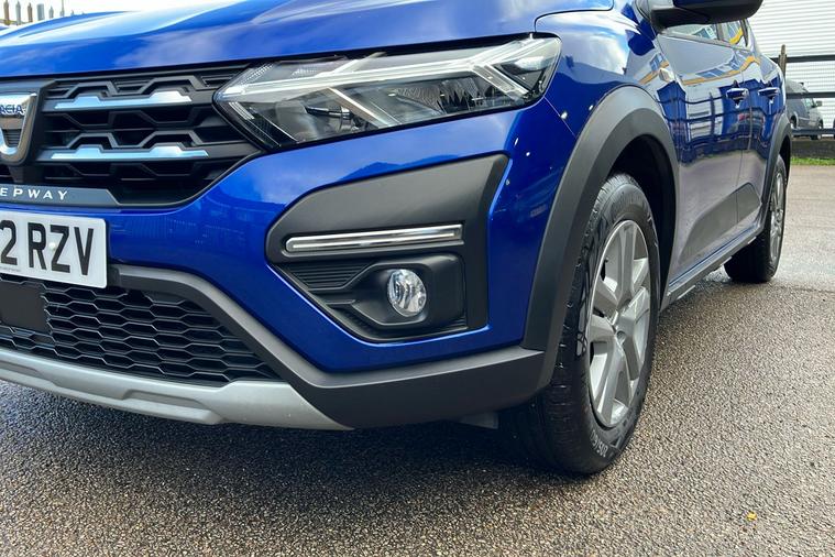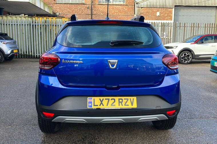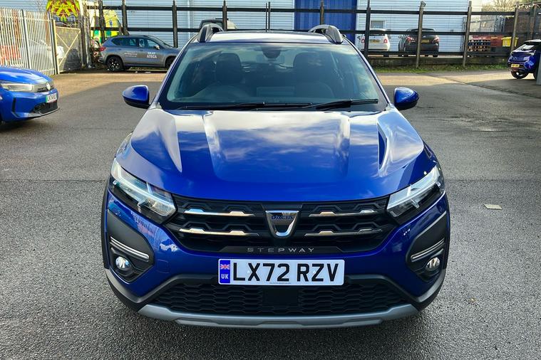 Presenting the Dacia Sandero Stepway Comfort, a 2020 hatchback finished in striking blue. Registered in September 2022 and with just one previous owner, this car offers an efficient drive with a combined fuel economy of 50.4 mpg and a 999cc petrol engine delivering 89 bhp. The manual transmission pairs smoothly with front-wheel drive, and the car reaches a top speed of 107 mph. Its spacious interior comfortably seats five with practical boot space ranging from 320 to 1108 litres, ensuring ample room for daily journeys or longer trips. Practical features include rear parking sensors with a reversing camera, modular roof bars, and a contemporary 8-inch media display with DAB radio for connected, enjoyable travel. Finished in Iron Blue with titanium black cloth upholstery, this Sandero Stepway provides style and versatility in one package. This vehicle is ULEZ compliant, making it ideal for city driving.