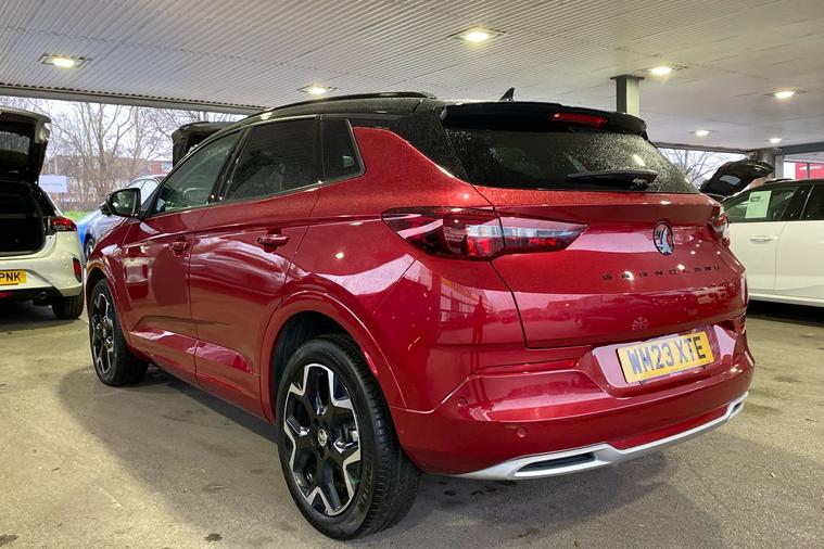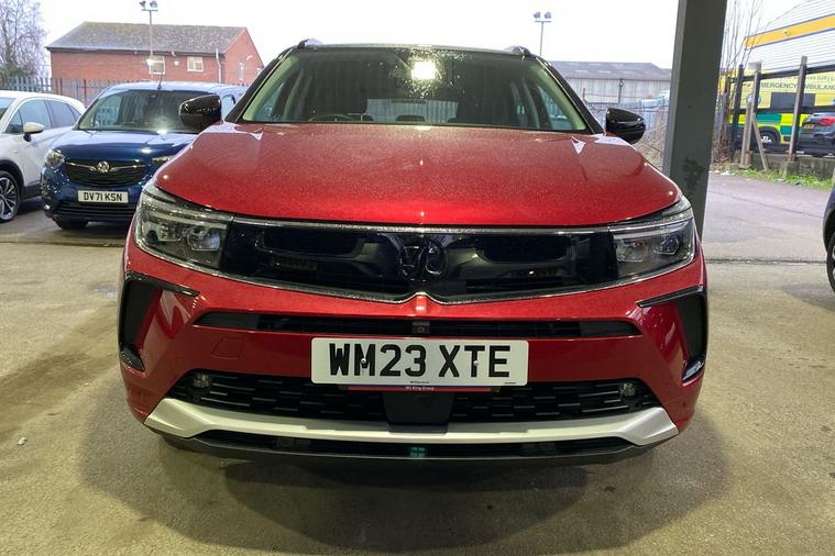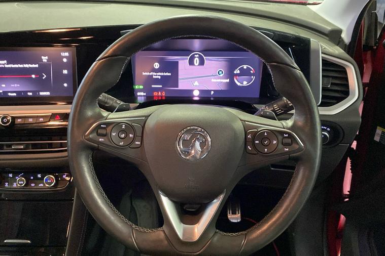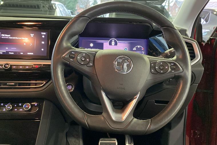 Experience modern driving with this 2021 Vauxhall Grandland Ultimate in striking red. This spacious SUV combines a stylish design with practicality, offering a generous 514-litre boot and flexible seating for five. Powered by an economical 1.2 petrol engine, it achieves a combined 44.1 mpg. The automatic gearbox delivers smooth, effortless journeys, while acceleration from 0 to 62 mph takes just 10.3 seconds, with a top speed of 121 mph. Safety and convenience are enhanced with features including a panoramic 360-degree parking camera, adaptive LED headlights, advanced park assist and heated ergonomic sports front seats. With only one previous keeper since registration in July 2023, this front-wheel drive Grandland is a superb all-rounder for families and commuters alike. ULEZ compliant, it’s ready for city and urban driving without worry. Discover comfort and confidence in every mile with this remarkable SUV.