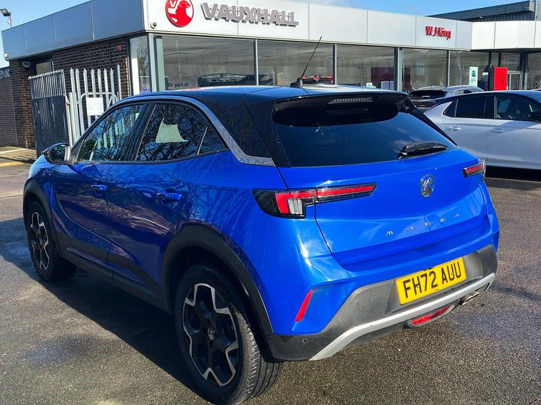 Experience the Vauxhall Mokka Ultimate, finished in striking Metallic Boracay Blue. Registered in January 2023 and with just one previous keeper, this used SUV offers the perfect combination of style, practicality, and engaging driving. Powered by a 1.2 Turbo engine with a manual gearbox, it delivers a lively drive with 128 hp, reaching 0–62 mph in just 9.1 seconds and a top speed of 125 mph. Enjoy excellent efficiency with a combined 52.3 mpg and a spacious interior that seats five comfortably. With a generous boot capacity of up to 1, 105 litres, it easily adapts to your lifestyle. A host of thoughtful features, including a panoramic rear view camera, advanced park assist, heated front seats, and adaptive cruise control, make every journey a pleasure. Plus, as a Euro 6 vehicle, it is fully ULEZ compliant for hassle-free city driving.