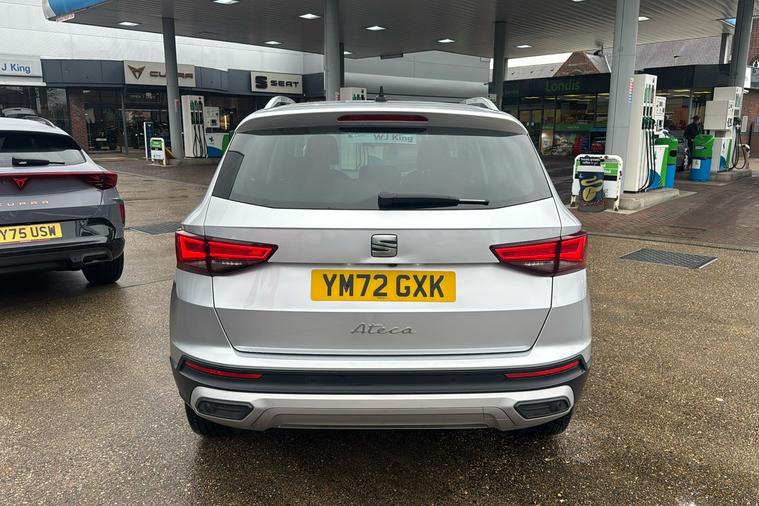 Introducing this used SEAT Ateca Xperience, first registered in January 2023 and finished in striking Reflex Silver metallic paint. This SUV blends modern style with practicality, featuring a spacious interior for up to five passengers and an impressive 510-litre boot. Enjoy smooth journeys thanks to the automatic transmission and efficient petrol engine, offering a combined fuel economy of 42.8 mpg. With a top speed of 126 mph and a suite of thoughtful enhancements such as ambient interior lighting and multi-function controls, this Ateca Xperience delivers comfort and convenience for every trip. A single previous keeper has looked after this car, making it an appealing choice for those seeking reliability and contemporary features. Additionally, this vehicle is ULEZ compliant, allowing you to drive confidently in London and other low-emission zones. Combining stylish design, practical space, and everyday usability, the SEAT Ateca Xperience is ready for your next adventure.