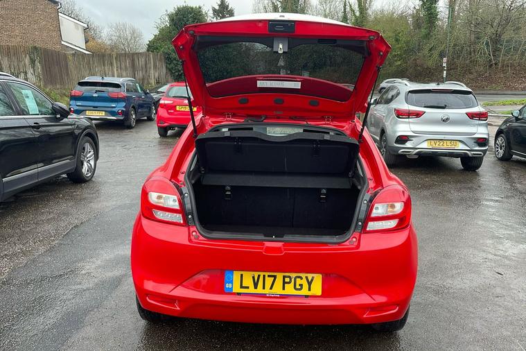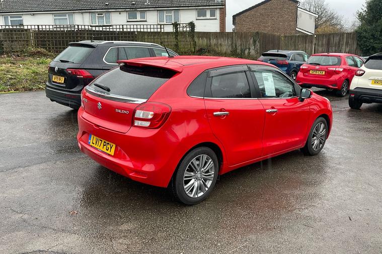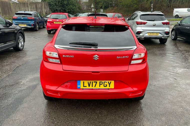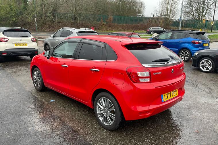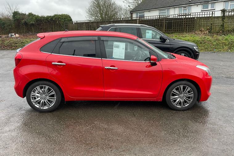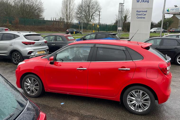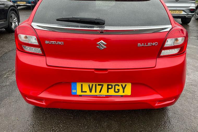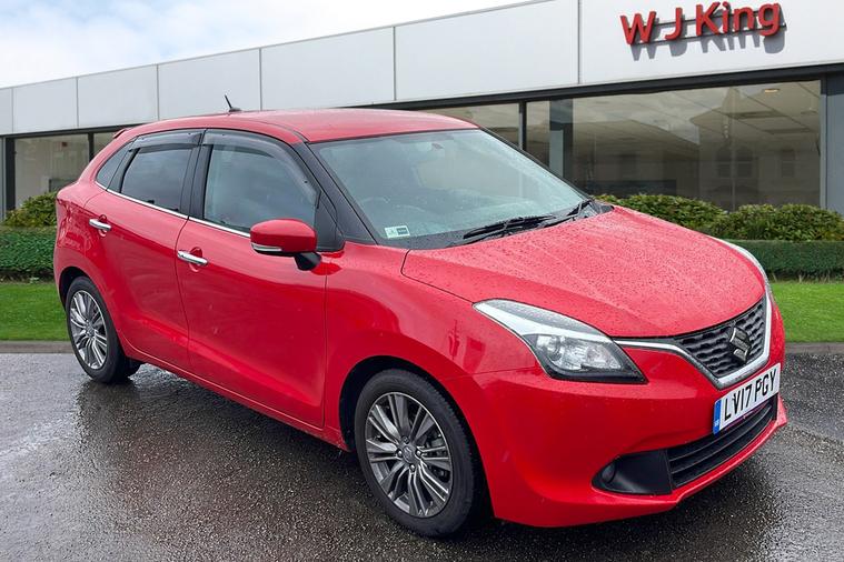 Presenting the Suzuki Baleno SZ5, finished in striking Fire Red. First registered in May 2017, this automatic five-door hatchback is a practical choice for everyday driving, offering comfortable space for up to five people. With only one previous keeper, it brings economical motoring thanks to a 998cc petrol engine and a combined efficiency of 44.6 mpg. This model features modern essentials including adaptive cruise control, satellite navigation, a rear parking camera, and a digital radio with smartphone connectivity for seamless journeys. Completing the package are tasteful touches like 16-inch alloy wheels and privacy glass. The Baleno has a generous 320-litre boot, expanding to 756 litres with the seats down, ideal for families or active lifestyles. With a top speed of 118 mph and a smooth automatic transmission, this car is both comfortable and responsive. The Suzuki Baleno SZ5 meets Euro 6 emissions standards, making it ULEZ compliant.