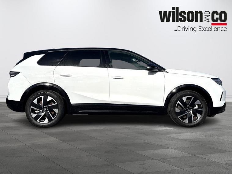 With an incredibly low mileage of just 25 miles, this 2026 Vauxhall Grandland Electric GS represents an exceptional opportunity to own a virtually new electric vehicle. As a single owner vehicle, it has been meticulously cared for and presents in outstanding condition. This GS trim model boasts an 81 kWh battery, offering an impressive maximum range of 323 miles from new, ensuring you can travel further on a single charge. Charging is convenient, with a full charge at home taking approximately 6 hours and 45 minutes using a 7kW charger, and rapid public charging can achieve 80% capacity in just 34 minutes from empty.The Vauxhall Grandland Electric GS is equipped with a host of advanced features designed to enhance your driving experience. Navigate tight spaces with ease thanks to front and rear parking sensors and a rear view camera, complemented by Intelli-LED headlights for superior visibility. Inside, youll find a 16 inch multimedia infotainment system with seamless wireless Apple CarPlay and Android Auto integration, allowing you to stay connected on the go. Comfort is assured with automatic air conditioning, and the convenience of a wireless charger for your mobile devices is also included. Furthermore, the Grandland Electric offers generous boot space, making it a practical choice for families and everyday life, outperforming many other electric vehicles in its class.