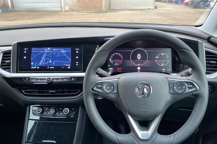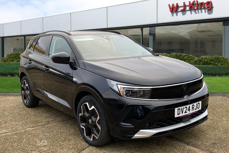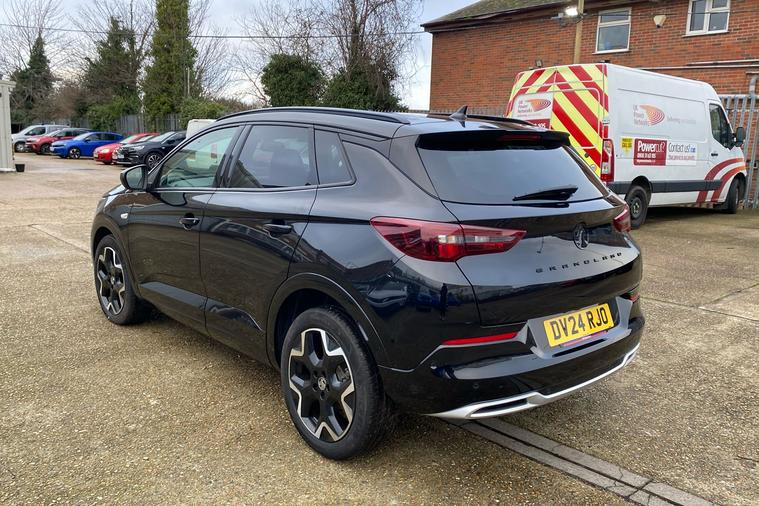 Introducing the Vauxhall Grandland Ultimate in striking metallic Carbon Black. Registered in 2024, this stylish used SUV offers a spacious and comfortable interior with seating for five, making it ideal for family journeys or everyday driving. The efficient 1.2 Turbo petrol engine delivers smooth performance, taking you from 0 to 62 mph in 10.4 seconds and reaching a maximum speed of 122 mph, while achieving a combined 46.3 mpg. Enjoy the added practicality of a generous 514-litre boot, expanding to 1, 652 litres with the seats folded. Standout features include 19-inch diamond-cut alloy wheels, advanced panoramic parking camera, Adaptive IntelliLux LED Pixel Headlights, heated front seats, wireless charger and keyless entry. With enhanced safety and driver assistance technologies, the Grandland Ultimate is designed to deliver confidence and convenience on every journey. This vehicle meets Euro 6 emissions standards and is ULEZ compliant.