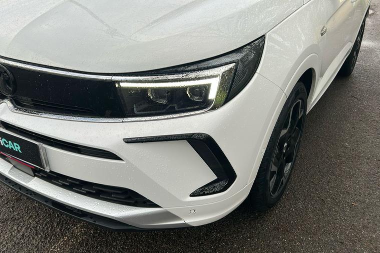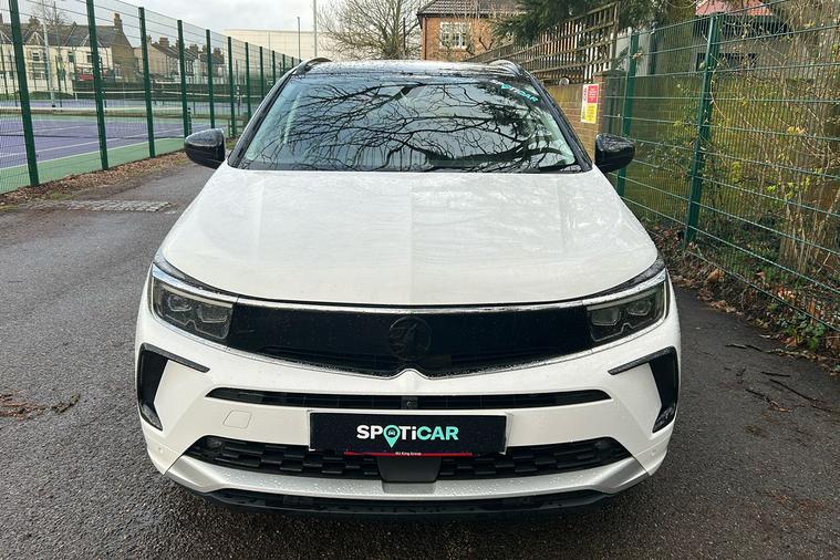 This 2021 Vauxhall Grandland Ultimate in Arctic White offers an attractive combination of practicality and contemporary style. With just one previous keeper since its registration in November 2023, this automatic SUV delivers a smooth drive, featuring a petrol engine with 128 bhp and an impressive combined fuel efficiency of 44.1 mpg. It can accelerate from 0 to 62 mph in 10.3 seconds and has a top speed of 121 mph. The spacious interior provides seating for five and a generous boot capacity of up to 1, 652 litres with the seats folded down. Standout features include 19-inch diamond-cut alloy wheels, 360-degree panoramic parking camera, adaptive IntelliLux LED pixel headlights, heated ergonomic sports seats, and a premium leather-effect interior. This Grandland is compliant with Euro 6 standards, making it a great choice for those seeking reliability, comfort, and versatility in a modern SUV. ULEZ compliant.