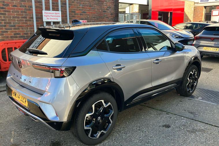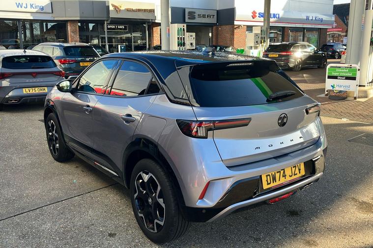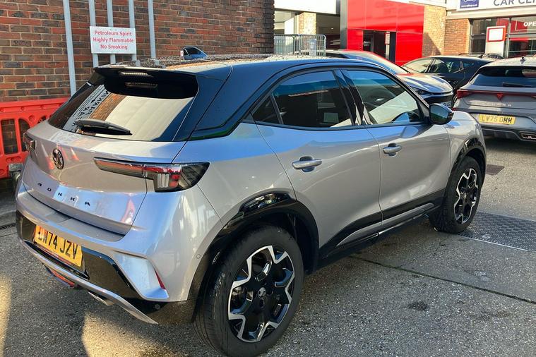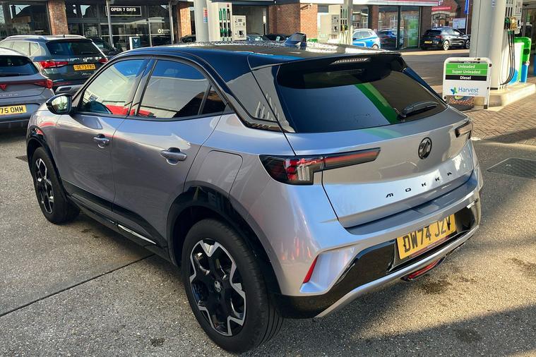 Introducing the 2024 Vauxhall Mokka Ultimate, finished in striking two coat metallic Contrast Grey. This stylish SUV combines generous space with an efficient 1.2 Turbo petrol engine and a smooth automatic transmission. Offering seating for five and a versatile boot with up to 1, 105 litres of space, it adapts effortlessly to your lifestyle. Designed for comfort and ease, it features handy touches such as a heated steering wheel and seats, ambient lighting, and intuitive controls. Modern conveniences include a wireless mobile phone charger, panoramic rear-view camera, and seamless smartphone connectivity. With a combined fuel economy of 46.3 mpg and a top speed of 126 mph, this model balances performance with practicality, making it ideal for daily commutes or weekend adventures. This car is ULEZ compliant, meaning you can drive in low-emission zones with confidence. Experience contemporary driving at its finest in the Vauxhall Mokka Ultimate.
