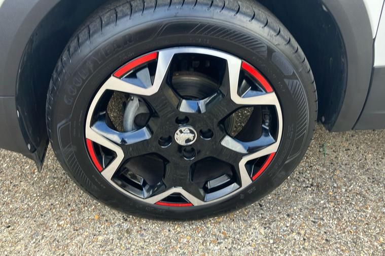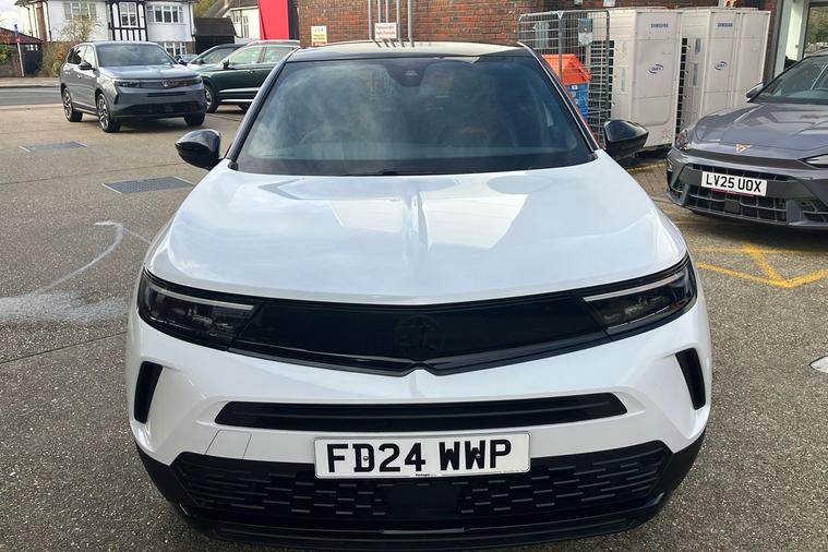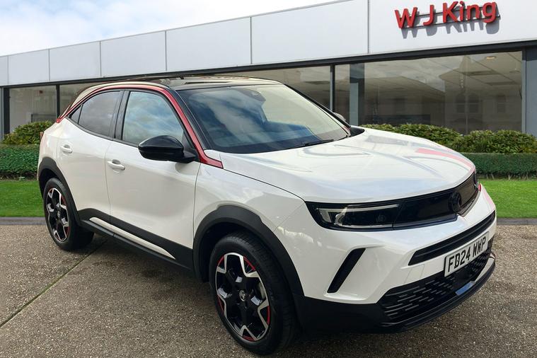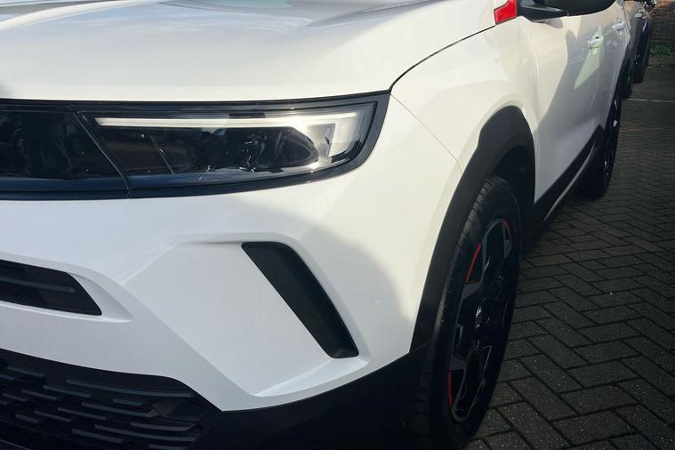 Introducing a used Vauxhall Mokka Gs, registered in 2024 and finished in standout Arctic White. This eye-catching SUV boasts sporty touches, with 18-inch bi-colour alloy wheels and vivid red accents giving it a dynamic presence. Powered by a 1.2-litre turbo petrol engine, it offers confident acceleration from 0-62 mph in 9.1 seconds and a top speed of 125 mph, while maintaining an impressive combined fuel efficiency of 51.4 mpg. Its refined interior features a high-tech digital display and Pure Panel navigation system, alongside thoughtful details like a flat-bottom leather-effect steering wheel and red trim inserts. With 350 litres of boot space (expanding up to 1, 105 litres with the seats down), it caters to your everyday needs with ease. This Vauxhall Mokka is compliant with Ultra Low Emission Zone (ULEZ) standards, offering both exceptional comfort and peace of mind for city driving.