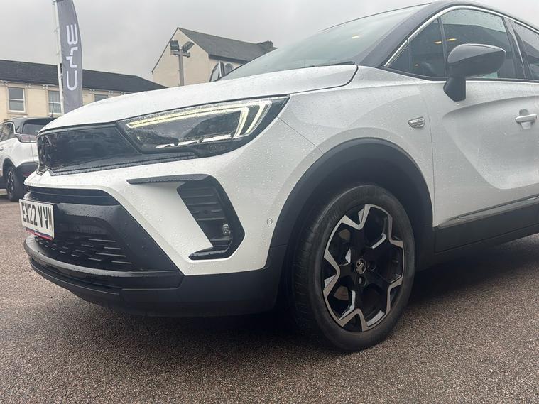 Introducing this stylish WHITE Vauxhall Crossland Ultimate SUV, first registered in April 2022 and previously owned by just one keeper. This used, manual petrol vehicle offers a balance of practicality and comfort, with seating for five and a generous boot space ranging from 410 to 1, 255 litres. Powered by a 1.2 Turbo engine delivering 128 horsepower, it achieves 0-62 mph in 9.5 seconds and has a top speed of 125 mph, making it ideal for both city and motorway driving. Enjoy enhanced efficiency with a combined fuel economy of up to 49.6 mpg. The versatile design features a front wheel drive configuration and a modern body finished with eye-catching details. As a Euro 6 vehicle, it is ULEZ compliant, allowing worry-free travel in low emission zones. The Crossland Ultimate is a great choice for those seeking modern motoring in a capable and comfortable SUV.