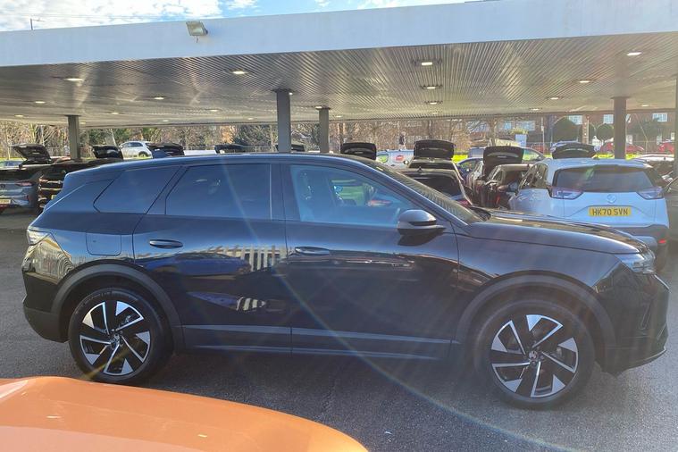 Presenting a 2024 Vauxhall Grandland Gs in stunning Metallic Carbon Black. This used SUV stands out with impressive efficiency, offering a combined fuel economy of 51.4 mpg. Powered by a 1.2-litre hybrid engine and automatic transmission, it delivers a smooth drive with up to 134 horsepower and a top speed of 126 mph. The spacious interior seats five comfortably, while the 550-litre boot expands to a capacious 1, 645 litres, making it an ideal choice for family life or weekend adventures. Notable highlights include a 10-inch digital instrument cluster, a 16-inch multimedia infotainment system with wireless connectivity, luxurious 19-inch diamond-cut alloy wheels, and both front and rear parking sensors complete with a rear-view camera. Combining practical features with stylish design, this Grandland is a modern and versatile option for discerning drivers. This vehicle is ULEZ compliant.