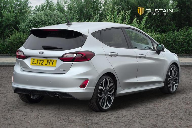 This 2022 Ford Fiesta ST Line X Edition offers an engaging driving experience combined with modern technology. Powered by a responsive 1.0L petrol engine, this Euro 6 compliant model delivers an impressive 0-62mph in just 9.4 seconds. The ST Line X Edition trim boasts striking LED projector headlights with daytime running lights, and automatic headlights for enhanced visibility. Convenience is key with the Ford KeyFree System allowing for keyless entry, and electronic automatic temperature control for effortless climate management. Parking is made simpler with rear parking distance sensors.Experience excellent fuel economy with this Fiesta, achieving a highlight of 58 mpg, which indicates it is more economical than many similar vehicles. Furthermore, its low CO2 emissions highlight its environmental consideration. These combined highlights demonstrate the Fiesta ST Line X Editions superior blend of performance, efficiency, and advanced features, making it a standout choice in its class.