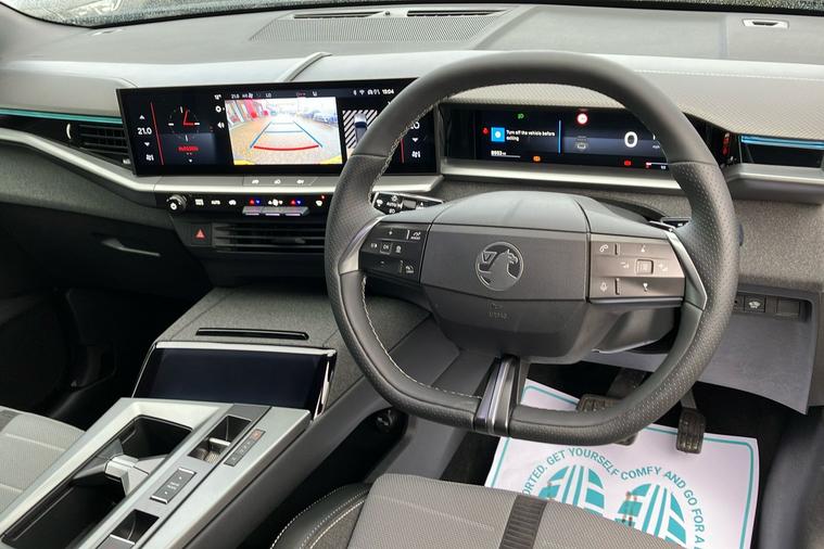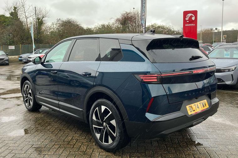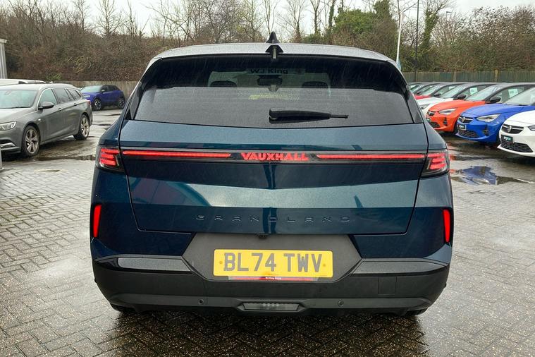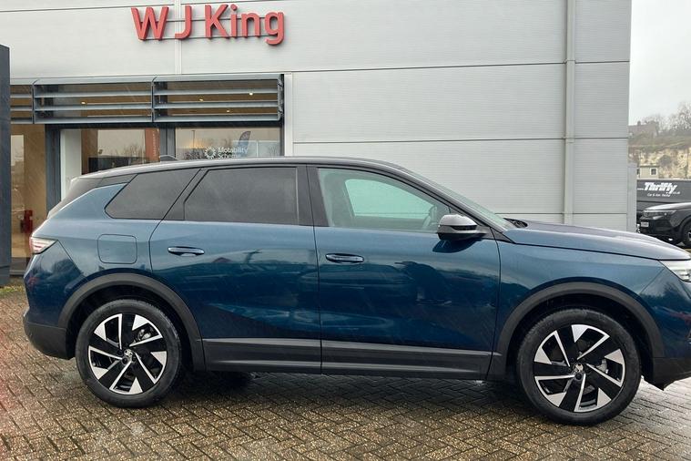 Presenting the 2024 Vauxhall Grandland Gs Hybrid, finished in striking Metallic Spectrum Blue. This used SUV combines a dynamic hybrid powertrain with easy automatic driving and spacious comfort for five people. With generous boot space up to 1, 645 litres, it adapts to family life or active weekends with ease. Enjoy economical journeys with an impressive combined fuel efficiency of 51.4 mpg and a refined ride, thanks to features such as ambient lighting and acoustic windscreen. Highlights include a vivid 10-inch digital instrument cluster, a sleek 16-inch multimedia infotainment system with wireless Apple CarPlay and Android Auto, and stylish 19-inch diamond-cut alloy wheels. Packed with practical touches, the Grandland offers the convenience of wireless mobile charging and a high-gloss black roof for a modern appearance. With only one previous keeper, this well-equipped hybrid SUV delivers both style and value for your next adventure.