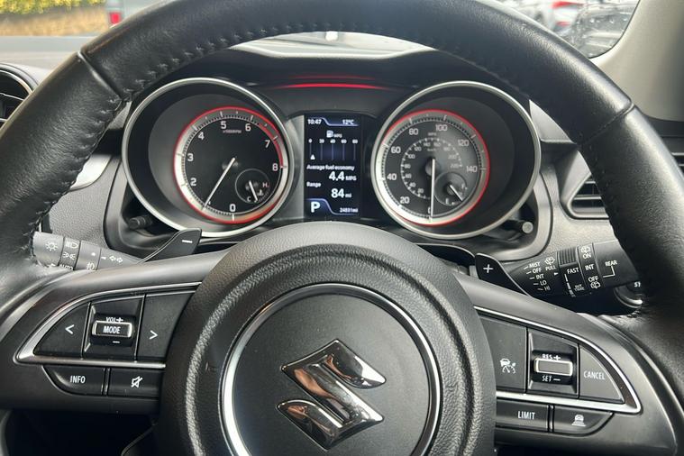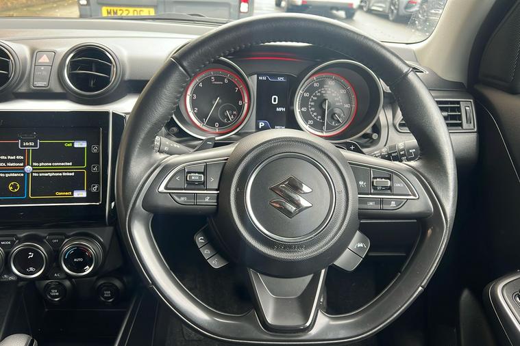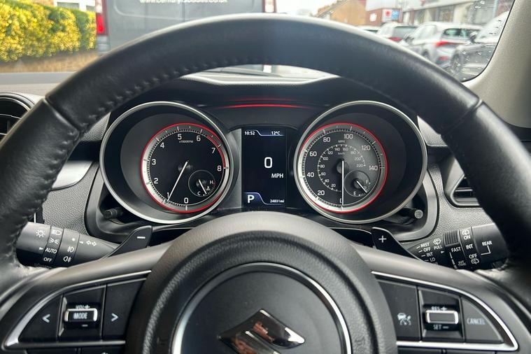 Introducing this stylish, used 2020 Suzuki Swift Mild Hybrid, finished in Solid Bright Red. Combining practicality with efficiency, this five-door hatchback offers superb fuel economy at 55.3mpg (combined), ideal for city and motorway driving. With automatic transmission and a compact 1.2-litre mild hybrid engine, it is smooth to drive and environmentally minded.Inside, there is comfortable seating for five alongside generous boot space—265 litres with seats up, expanding to 579 litres as needed. Features include 16-inch polished alloy wheels, adaptive cruise control, a rear parking camera and sensors, and a modern navigation system. The rear privacy glass and keyless entry add to its appeal and security.First registered in January 2023 and with only one previous keeper, this Swift is a practical choice for those seeking an efficient and reliable everyday car. This vehicle is ULEZ compliant.
