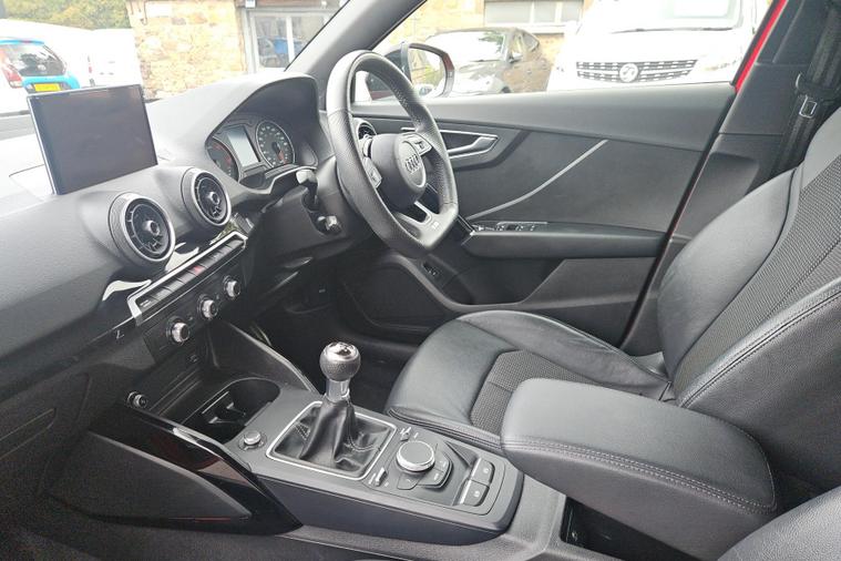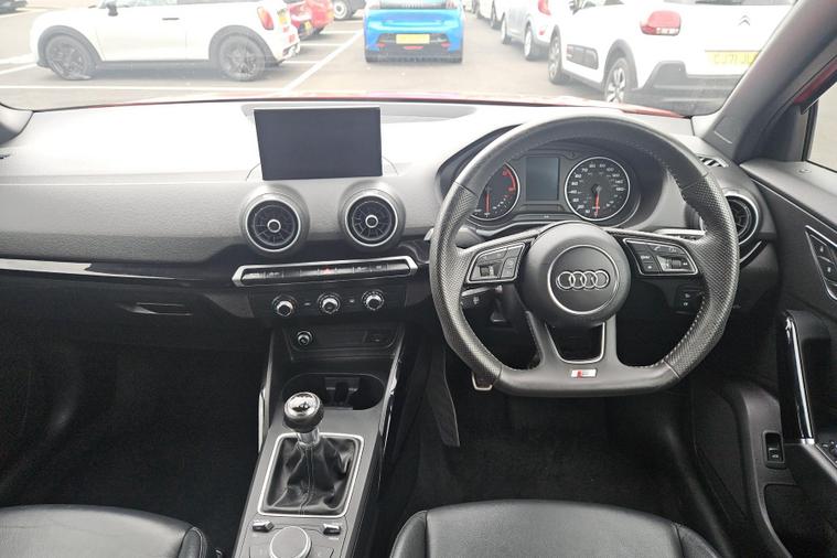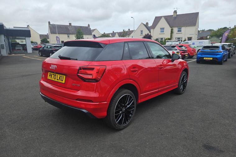 The Audi Q2 Black Edition is a high-performance variant of the Q2 SUV, featuring a powerful 1.5-litre TFSI engine that accelerates from 0 to 62 mph in 8.6 seconds and offers an impressive 150 PS. It comes with standard Audi Drive Select, which allows for a choice of driving modes from efficient to dynamic, and Sport suspension on the S line trim. The Black Edition is available with 19-inch alloy wheels in gloss black with diamond cut finish and includes features like LED headlights, interior lighting in the front footwells and door sills, and a powered tailgate. The interior is adorned with matte grey exterior trim, part-leather sports seats with embossed S logos, brushed aluminium trim, stainless steel pedals, and a new, flat-bottomed steering wheel. The Black Edition also features a complete suite of Audis premium sound system, 12.3-inch digital instrument cluster, 8.3-inch infotainment touchscreen, rear parking camera, and a lowered suspension for sportier handling.