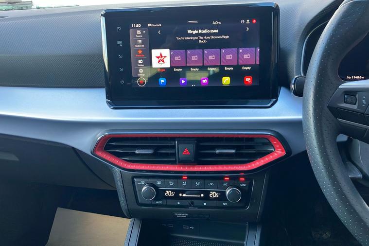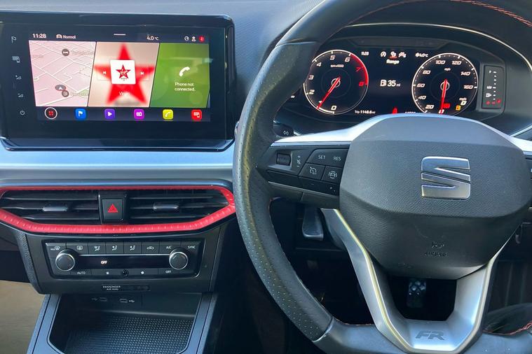 Experience enjoyable driving with this striking white SEAT Ibiza FR Sport, registered in 2023. Boasting a stylish hatchback design and an efficient petrol engine, this car delivers up to 52.3 mpg combined, offering both fun and practicality. The FR Sport model exudes sporty flair with eye-catching 18-inch machined alloy wheels and distinctive exterior styling. Inside, you’ll find a contemporary interior featuring digital cockpit displays, dual-zone climate control, and ambient lighting, creating a modern and comfortable environment for every journey. With seating for five and a generous 355-litre boot, there is plenty of space for both passengers and luggage. Safety and navigation are enhanced with smart systems, including a 9.2-inch navigation setup and lane assist. Enjoy extra peace of mind knowing this car meets Euro 6 standards and is ULEZ compliant, making it ideal for city and longer trips alike.