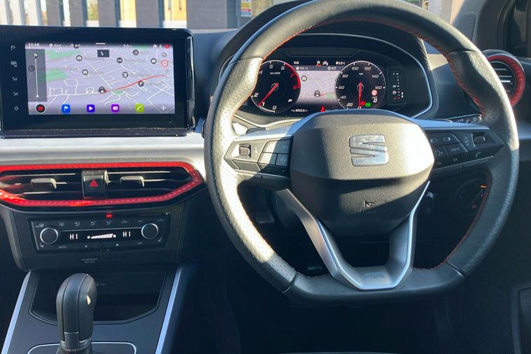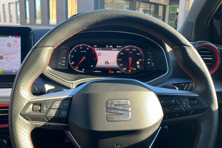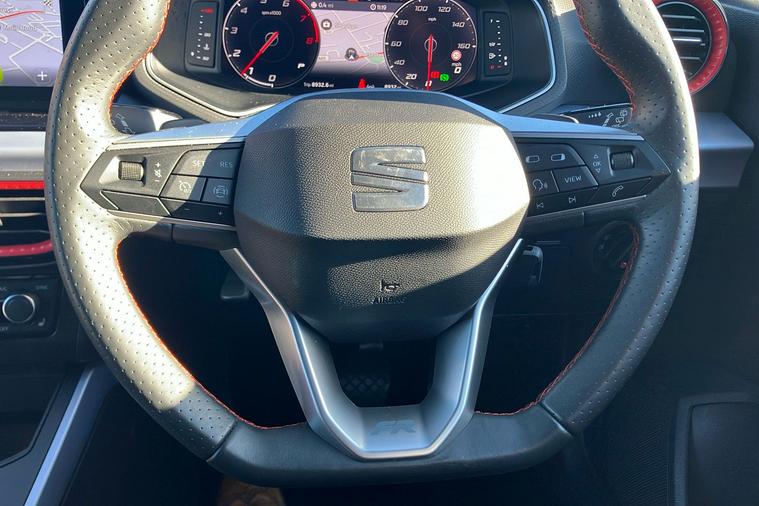 - Perforated Leather Flat-Bottomed Steering Wheel with Red Stitching and FR Logo with Leather Gear Knob and Handbrake