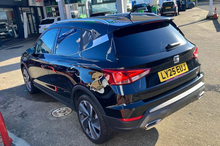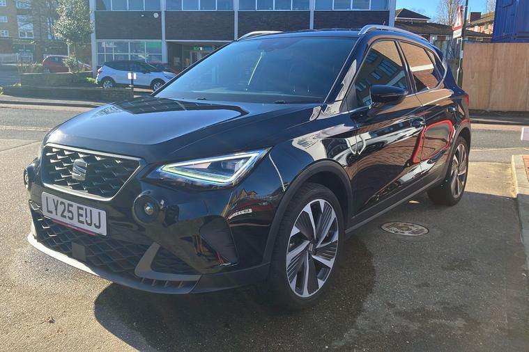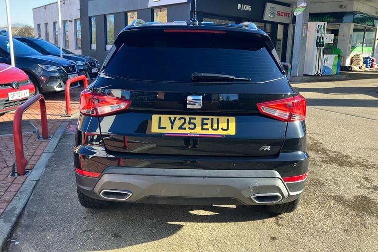 Introducing the 2021 SEAT Arona FR Sport, a stylish used SUV finished in Metallic Midnight Black. This automatic, front-wheel drive model combines sharp design with a spacious five-door layout and comfortable seating for five. With a practical 400-litre boot, the Arona is ideal for everyday use and weekend adventures. Its economical 1.0-litre petrol engine returns an impressive combined 49.6 mpg and delivers 113 horsepower, while the top speed reaches 120 mph. Standout features include 18-inch Cosmo Grey Matt alloy wheels, a 9.2-inch navigation system, heated front seats, dual zone climate control, and dark tinted rear windows. Enjoy added convenience with wireless phone charging and the SEAT Digital Cockpit. Safety is enhanced with lane keeping assistance and emergency brake support. With only one previous keeper, this Arona offers a modern driving experience and a striking presence on the road.