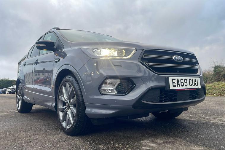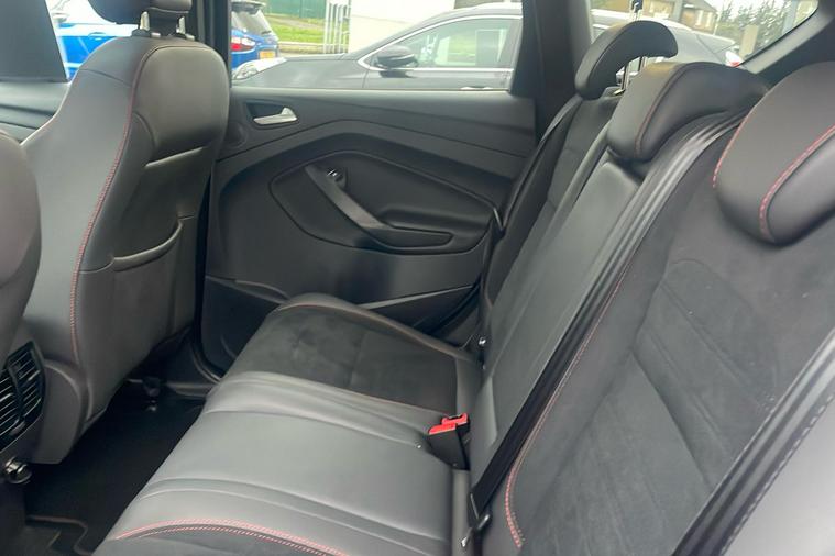 Introducing the 2016 Ford Kuga ST Line Edition, a stylish used SUV finished in sleek grey. With just one previous keeper and registered in October 2019, this five-door model offers a practical and spacious experience, comfortably seating five and boasting up to 1, 603 litres of boot space. Powered by a 2.0-litre diesel engine producing 148hp, it delivers a smooth manual drive and a top speed of 121mph, while achieving an efficient combined 43.5mpg. Key highlights include striking 19-inch alloy wheels, a power opening panoramic roof, rear privacy glass, and a full body styling kit for real road presence. Enhanced driver convenience features include cruise control with adjustable speed limiter, rear parking sensors, and a Quickclear heated windscreen. The Kuga’s ST Line Edition specification offers a blend of sporty design and everyday versatility, making it a strong choice for those seeking reliability and style in their next SUV.