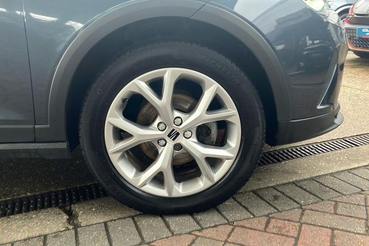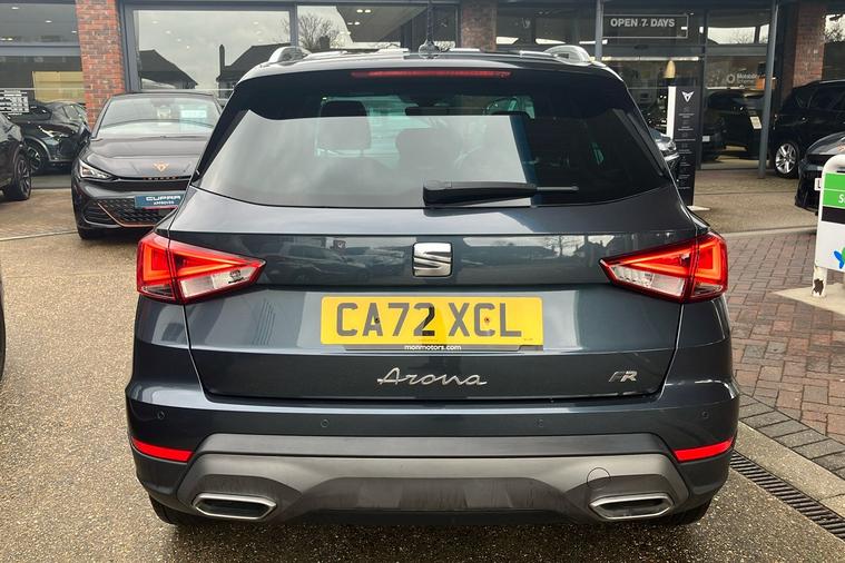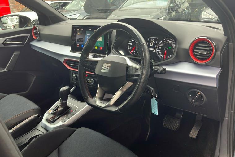 Introducing this 2021 SEAT Arona FR, finished in striking Magnetic Tech Grey metallic paint. This stylish SUV is both practical and efficient, comfortably accommodating five passengers with a generous 400-litre boot for added versatility. Powered by a lively 1.0-litre petrol engine, it delivers a confident drive with 108hp, reaching top speeds of up to 118 mph. Enjoy smooth gear changes thanks to its automatic transmission and take advantage of impressive fuel economy with up to 47.9 mpg combined.Inside, the Arona FR stands out with features such as a 9.2-inch touchscreen display, digital cockpit, ambient lighting, and vibrant Daring Red air vents, all designed to offer an enjoyable and comfortable motoring experience. This car was first registered in November 2022 and has had one previous keeper. Experience the perfect balance of style, comfort, and everyday usability in this SEAT Arona FR.