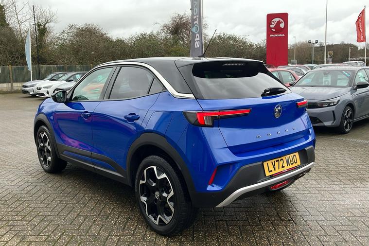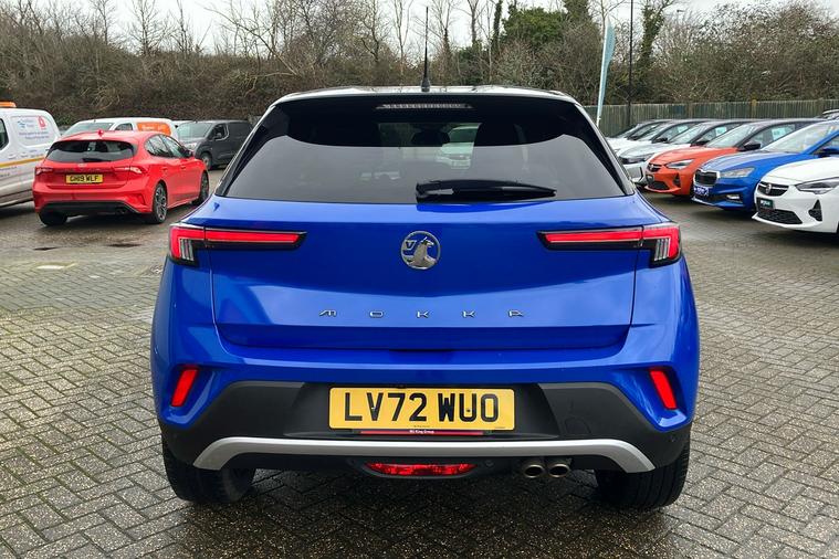 Presented in striking Voltaic Blue metallic paint, this used Vauxhall Mokka Ultimate offers a stylish and modern driving experience. Registered in late 2022 and having had just one previous keeper, it blends eye-catching looks with practical SUV versatility. The automatic gearbox and front wheel drive layout make for smooth journeys, while the 1.2 turbocharged petrol engine delivers a responsive drive with 128hp, acceleration from 0-62mph in 9.2 seconds, and a top speed of 124mph. Expect impressive combined fuel efficiency, with up to 47.9mpg. Inside, theres room for five, 350 litres of boot space with the seats up, and a spacious 1105 litres when folded. This Mokka is ULEZ compliant, making it ideal for city life. The car benefits from standout features, including a panoramic rear view camera, heated front seats, 10-inch multimedia display with navigation, alloy wheels, and advanced driver assistance systems.