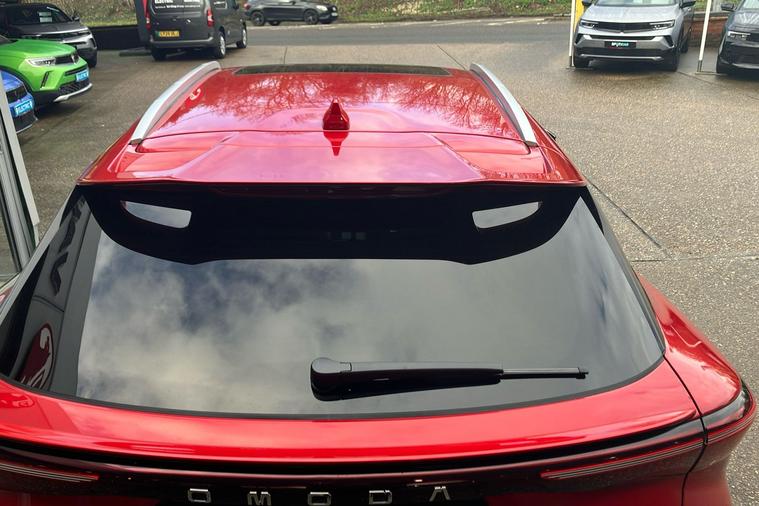 MANUFACTURERS WARRANTY UNTIL 21/09/2032 Finished in an eye-catching red, this used 2023 Omoda 5 Noble offers a refined and comfortable SUV experience. With seating for five and a spacious 380-litre boot, it’s practical for families and everyday use. Powered by a 1.6 litre engine delivering 145 bhp and an automatic transmission, it achieves a combined 31.2 mpg and can reach speeds up to 121 mph. Notable highlights include a 12.3-inch central display, heated and ventilated front sport seats, keyless start, a panoramic sunroof, and a power tailgate for added convenience. The vehicle is packed with advanced safety technology such as adaptive cruise control, blind spot detection, emergency lane keeping and rear cross traffic alert. Multimedia features include an 8-speaker SONY audio system and wireless connectivity for mobile devices. The Omoda 5 Noble is also ULEZ compliant, ensuring it’s ready for driving in low emission zones.