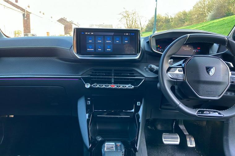 Experience modern motoring with this used 2023 Peugeot 208 GT Hybrid Hatchback, finished in stylish Metallic Cumulus Grey. Combining efficiency and performance, its petrol hybrid engine delivers up to 65.0 mpg and 134 horsepower, with a top speed of 127 mph. The smooth automatic transmission and front-wheel drive setup make every journey enjoyable, whether around town or out on the open road. Inside, enjoy a sophisticated cabin enhanced by personalisable ambient lighting and advanced technology such as the 10-inch digital instrument panel and a full suite of intuitive controls. Its five-door layout offers practicality, with generous boot space available for your day-to-day needs. Features like full LED headlights with smart beam assist, 17-inch diamond-cut alloy wheels, and a panoramic HD rear camera add to the appeal. This vehicle is ULEZ compliant, making it perfect for city driving and beyond.