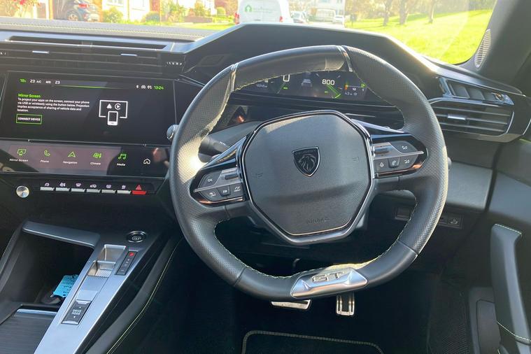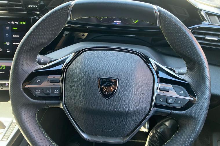 - Multifunction Full Grain Leather Steering Wheel with Admite Green Stitching - Chrome Detailing and GT Badging