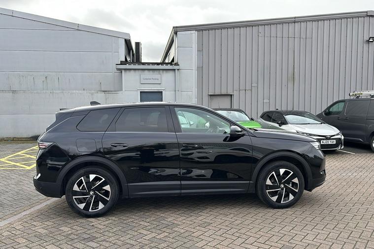 Introducing the 2025 Vauxhall Grandland Ultimate Hybrid, finished in striking Metallic Diamond Black. This used SUV offers an efficient hybrid drive, delivering up to 51.4 miles per gallon combined. With its automatic gearbox and front-wheel drive, it delivers a comfortable and refined experience behind the wheel. The Grandland offers ample space for every journey, with seating for five, generous boot capacity, and practical five-door access. Highlights include a 10-inch digital instrument cluster, a high-quality Focal sound system, panoramic 360° camera, and a wireless charger for mobile devices. Stylish 19-inch diamond-cut alloy wheels and distinctive LED lighting give the car a sophisticated road presence. With a top speed of 126 mph and a powerful hybrid setup, this vehicle blends performance with practicality for everyday driving. Experience convenience, innovation, and contemporary style with the Vauxhall Grandland Ultimate Hybrid.