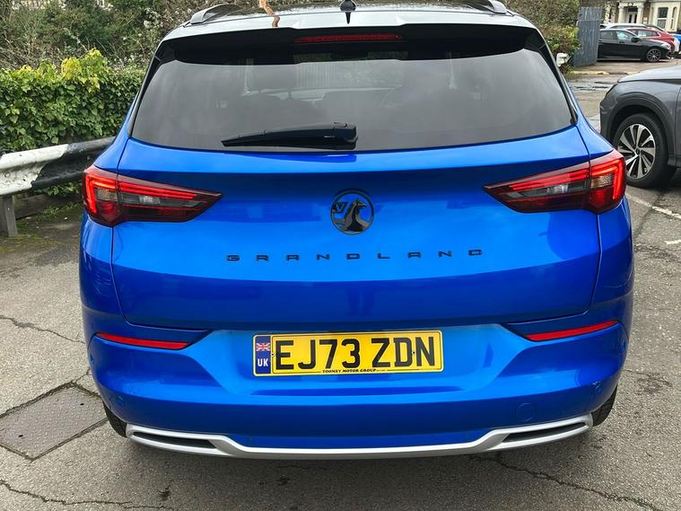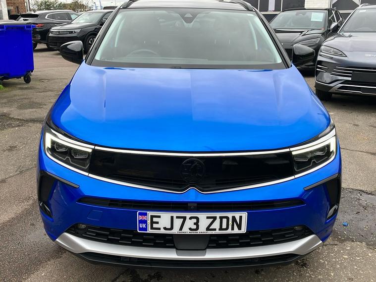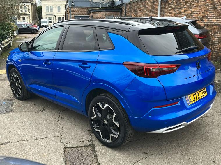 Presenting a stunning 2021 Vauxhall Grandland Ultimate in Metallic Spectrum Blue. This stylish SUV delivers a smooth automatic driving experience and offers impressive fuel efficiency, achieving a combined 44.1 mpg. With a dynamic 1.2 turbo engine producing 128 horsepower, enjoy confident acceleration, reaching 62 mph in just 10.3 seconds and a top speed of 121 mph. Comfortably seating five, the Grandland provides a spacious interior and a flexible 514-litre boot, expanding to 1, 652 litres for larger loads. Enhanced features such as a 360-degree panoramic parking camera, heated ergonomic sports seats, power tailgate with foot sensor, dual-zone climate control, adaptive LED headlights, and a fully integrated navigation system create a truly premium feel. Registered in November 2023 and with just one previous keeper, this Grandland is also ULEZ compliant, making it ideal for city driving and beyond. Experience refined practicality and advanced technology with this exceptional SUV.