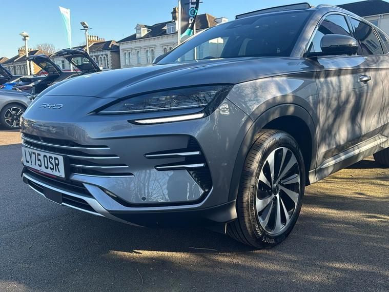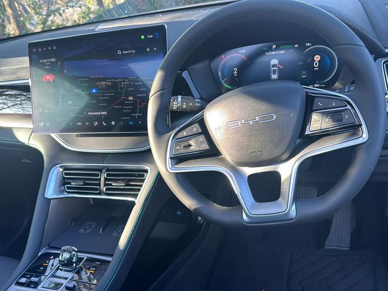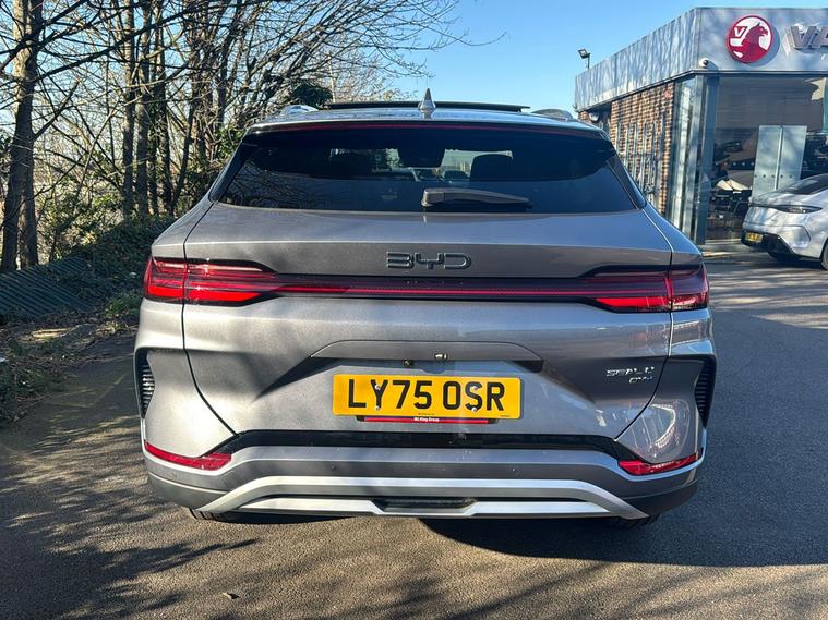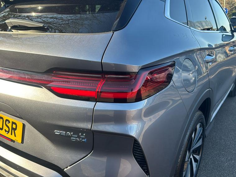 Introducing the BYD SEAL U DM-i Boost, a 2024 plug-in hybrid SUV finished in striking Metallic Time Grey. With room for five and a generous boot offering up to 1, 440 litres of space with the seats down, this vehicle is practical for both daily life and longer adventures. As a former demonstrator, it combines cutting-edge efficiency with barely-used condition. Benefit from an impressive combined fuel economy of 313.9 mpg and an electric range of up to 49 miles—perfect for low-emission urban driving or quiet countryside journeys. The smooth automatic transmission and front-wheel drive make every journey comfortable. With a powerful 1.5-litre engine delivering 214 hp and a maximum speed of 106 mph, this model perfectly balances performance with environmental considerations. And with ULEZ compliance, you can drive in London and other cities with confidence.