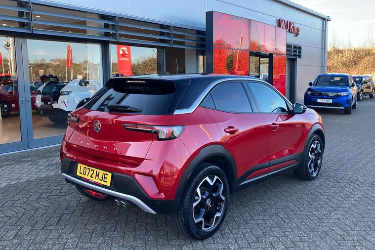 Finished in solid Flare Red, this used 2023 Vauxhall Mokka Ultimate offers stylish presence and practicality in a compact SUV body. With its automatic transmission and responsive 1.2 turbo engine, it provides a smooth and lively drive while achieving an impressive combined 47.9 mpg. Acceleration from 0 to 62 mph comes in just 9.2 seconds, and it’s capable of reaching up to 124 mph, making it ideal for a mix of urban and motorway journeys. Inside, there’s space for five passengers and a versatile boot offering 350 litres, expanding to 1, 105 litres with the rear seats folded. Highlights include a 10-inch Multimedia Navi Pro system with live navigation, adaptive cruise control, IntelliLux LED Matrix headlights, panoramic rear view camera, heated front seats, and a wireless charger for mobile devices. This Mokka complies with Euro 6 standards, making it ULEZ compliant for hassle-free city driving.