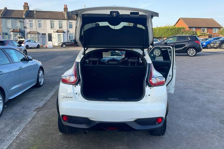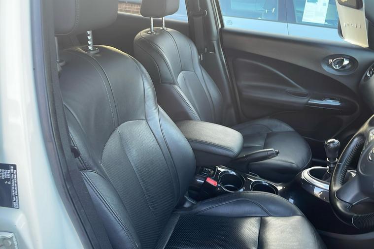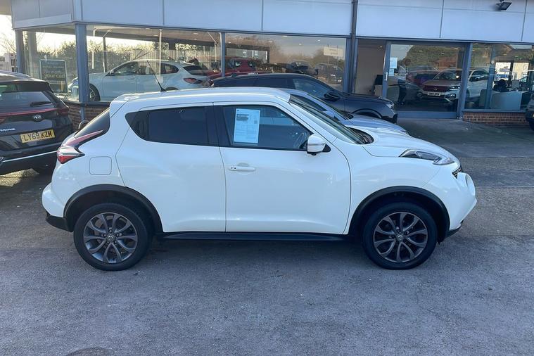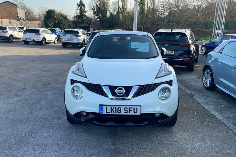Introducing this 2018 Nissan Juke Tekna in striking white, a used SUV that combines stand-out style with everyday practicality. Powered by a 1.2-litre petrol engine, it offers up to 49.6 mpg combined fuel efficiency and a maximum speed of 111 mph. With room for five passengers and generous boot space that expands to 1, 189 litres, it is designed for both daily duties and weekend getaways. This model is ULEZ compliant, ensuring you can confidently drive through London and other low emission zones. Enjoy additional touches including 17 alloy wheels, front heated seats, rear privacy glass, colour reversing camera, and Bluetooth integration—all adding to the comfort and convenience of every journey. Registered in March 2018 and with only one previous keeper, this Juke Tekna is an appealing choice for those seeking a stylish and efficient urban SUV.