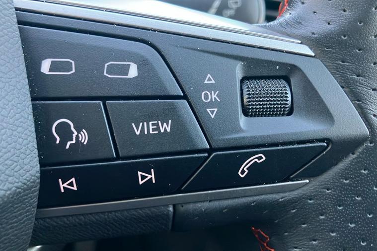 - Leather Flat Bottomed - Perforated Steering Wheel with Red Stitching and FR Logo