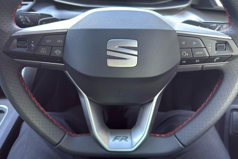 - Leather Flat Bottomed - Perforated Steering Wheel with Red Stitching and FR Logo