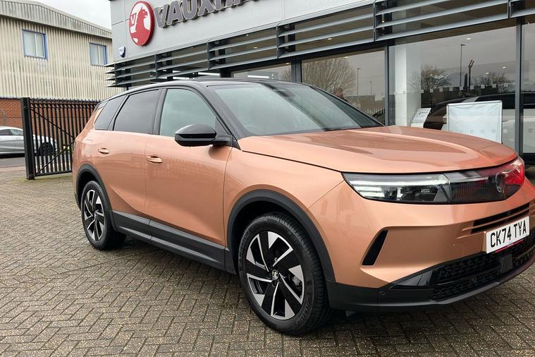 Presenting a used 2024 Vauxhall Grandland in an eye-catching metallic Impact Copper finish. This practical SUV blends hybrid efficiency with automatic convenience and front wheel drive for a smooth and comfortable journey. The Grandland accommodates five passengers with a spacious design, while the generous 550-litre boot expands to 1, 645 litres when needed. Benefiting from modern features such as a 10-inch digital instrument cluster, 19-inch diamond-cut alloy wheels, and a wireless charger for mobile devices, the Grandland ensures a connected driving experience. Expect impressive combined fuel consumption of 51.4 mpg, 134 horsepower, and a maximum speed of 126 mph, making it ideal for both city commutes and longer trips. With only one previous keeper, this hybrid SUV offers peace of mind alongside reliable performance. Importantly, this vehicle is ULEZ compliant, providing reassurance for driving in low emission zones across the UK.
