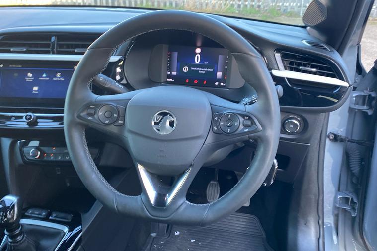 Introducing the 2023 Vauxhall Corsa Gs in stunning Graphic Grey metallic. This stylish hatchback offers a dynamic yet efficient drive, boasting a combined fuel economy of 53.3 mpg from its 1.2-litre petrol engine. Its spacious interior provides comfortable seating for up to five people, while the 309-litre boot is practical for everyday life, expanding to 1, 118 litres with the seats folded. With a top speed of 120 mph and a distinctive, modern design, it blends sporty looks with everyday usability. Premium diamond-cut 17-inch alloy wheels complement its sophisticated appearance, and the five-door layout ensures convenient access for all passengers. Enjoy reassuring handling with features such as electronic stability and traction control. First registered in March 2025 and with only one previous keeper, this Vauxhall Corsa Gs is a superb choice for those who value style and versatility. ULEZ compliant, offering peace of mind for city driving.