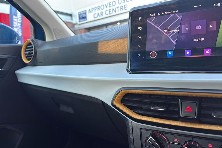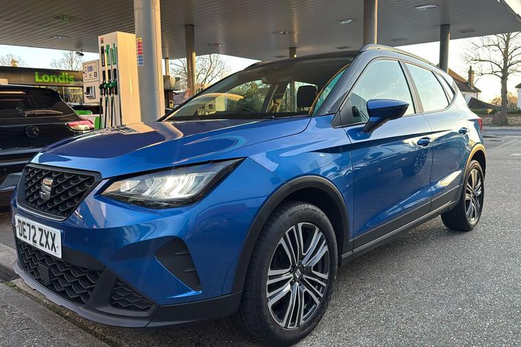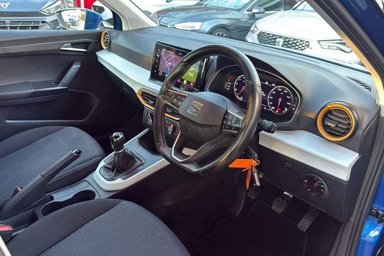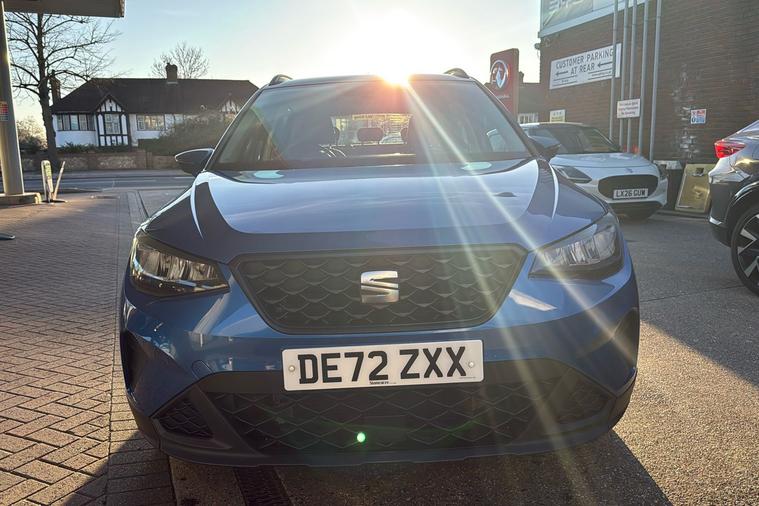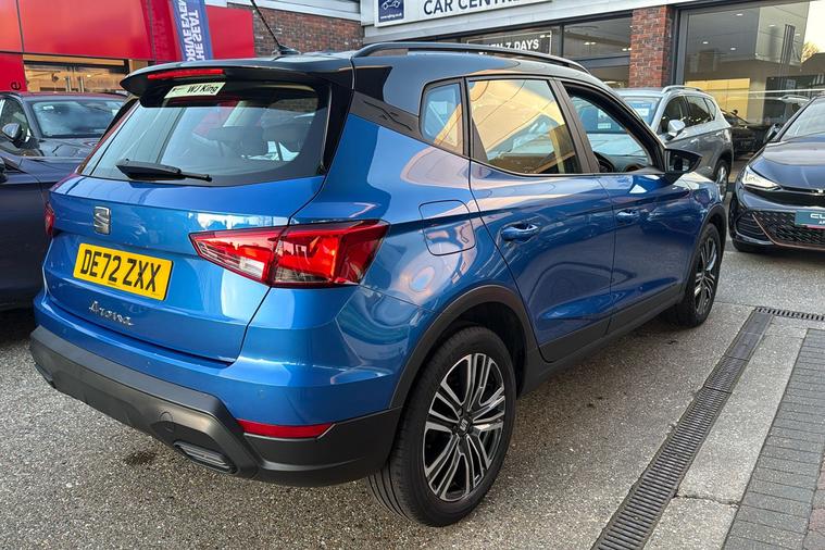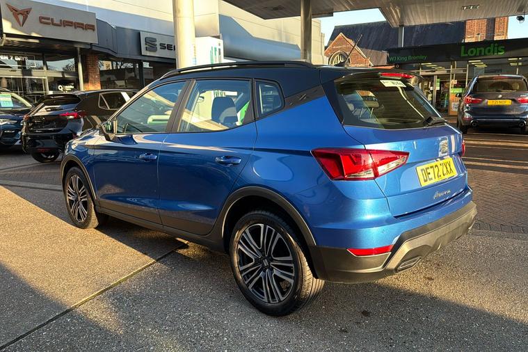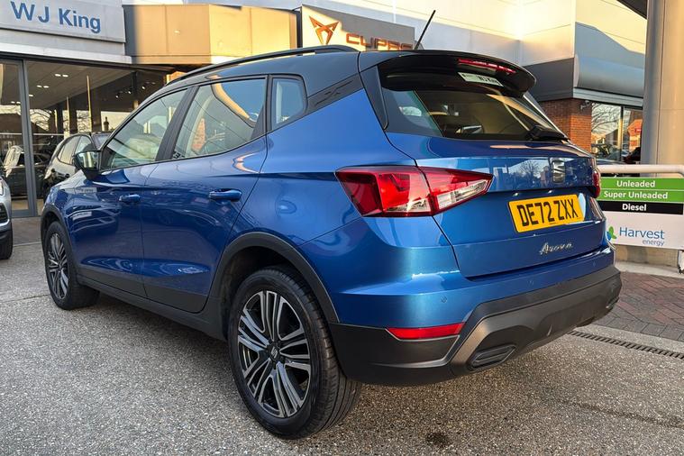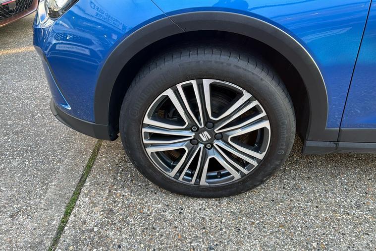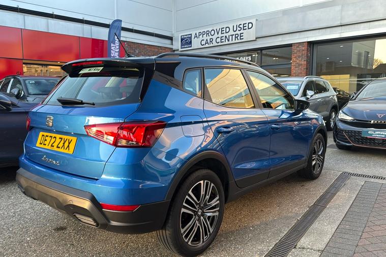 Presenting this 2022 SEAT Arona SE Technology, finished in striking Metallic Saphire Blue. Offering practicality with its generous 400-litre boot, this compact SUV seats five comfortably and features standout touches such as 17-inch Dynamic Machined alloy wheels and a contrast roof. Benefit from a modern 9.2-inch touchscreen display and digital cockpit, while staying connected on the move with Full Link smartphone integration and a wireless phone charger. Rear parking sensors make manoeuvring simple, and the lane keeping system adds reassurance on longer journeys. This Arona delivers an impressive combined efficiency of up to 53.3 mpg and is powered by a responsive 1.0 petrol engine with a manual gearbox, reaching up to 113 mph. Registered at the end of 2022 and with only one previous keeper, this car is ULEZ compliant, ensuring you can travel freely through low emission zones.