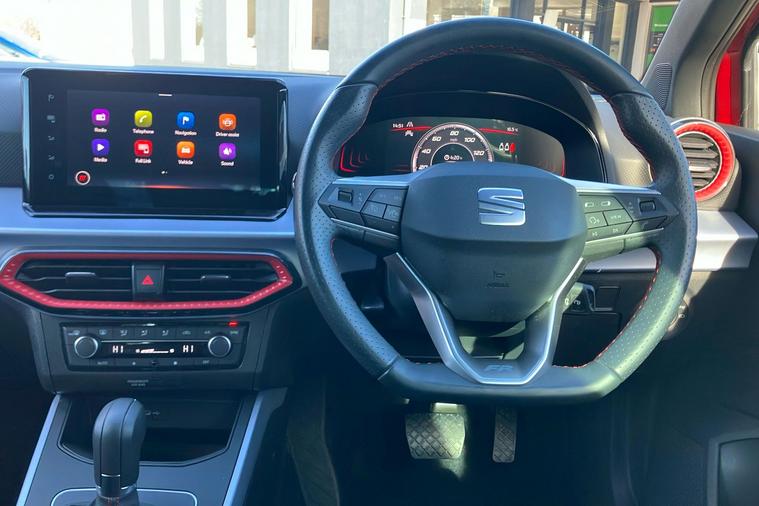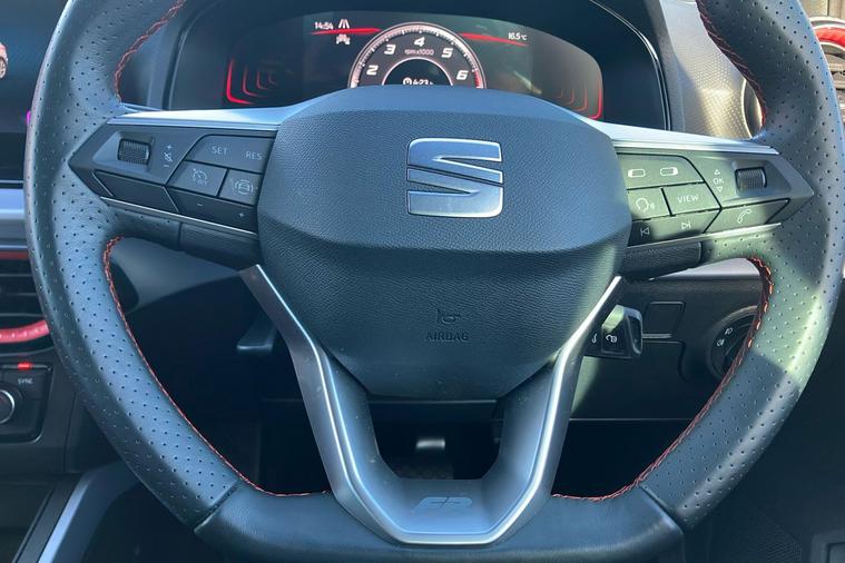 - Perforated Leather Flat-Bottomed Steering Wheel with Red Stitching and FR Logo with Leather Gear Knob and Handbrake