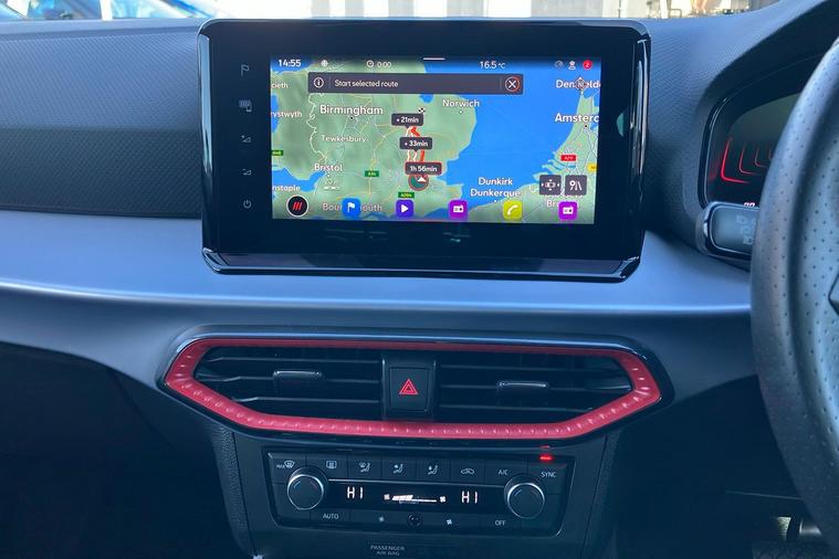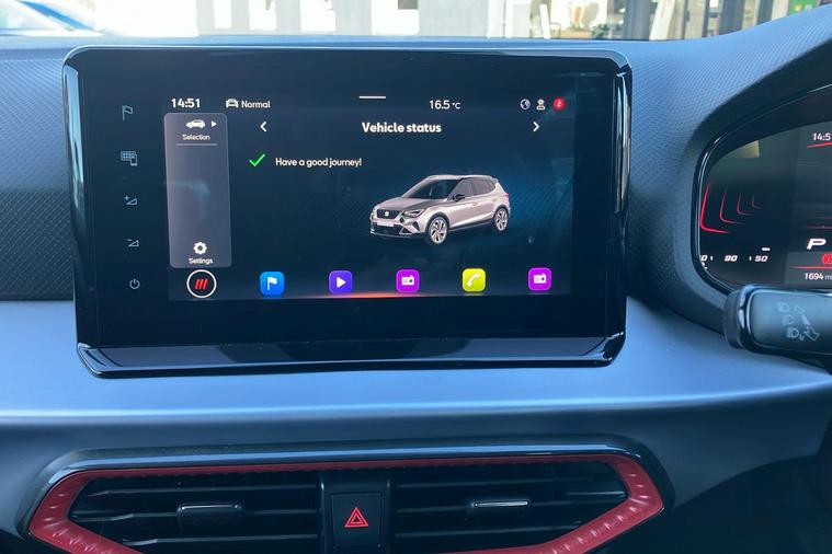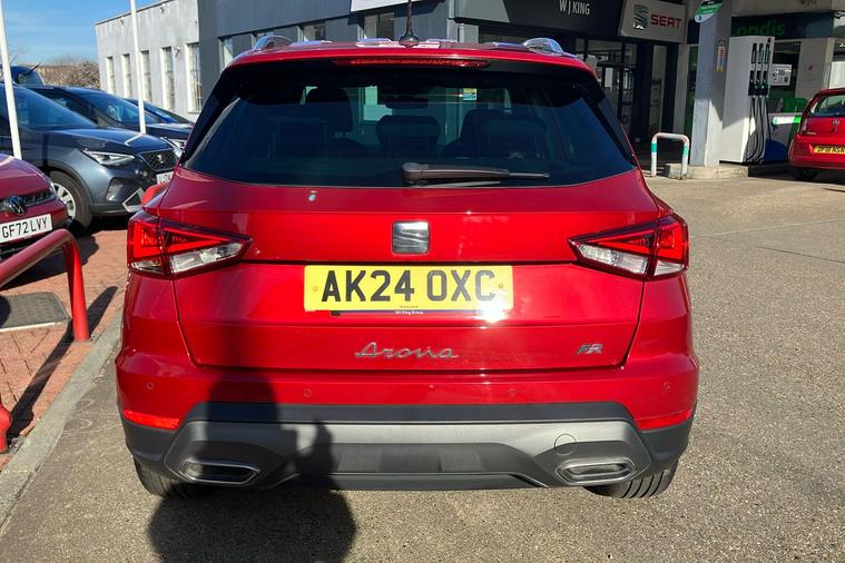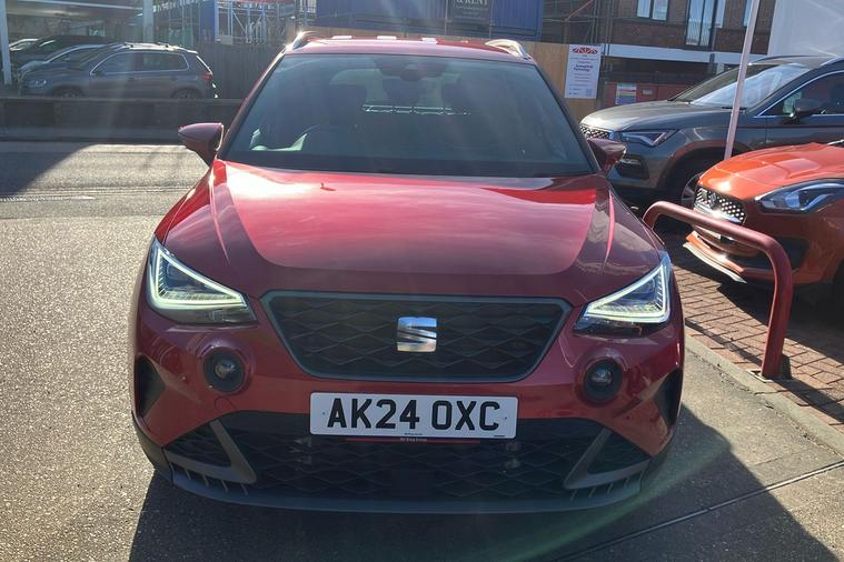 Introducing this 2024 SEAT Arona FR, finished in a striking metallic Desire Red. This stylish SUV combines a dynamic presence with everyday practicality, boasting five doors and space for five passengers. Enjoy a comfortable driving experience with an automatic gearbox and a suite of thoughtful features to keep every journey enjoyable. With a combined fuel efficiency of up to 50.4 mpg and a maximum speed of 130 mph, its ready for both city streets and longer trips. The boot offers a generous 400 litres of space, ensuring theres room for your daily essentials or weekend adventures. As a recent model first registered in May 2024 and with just one previous keeper, this Arona presents an excellent opportunity for those seeking both style and value in a used car. Plus, this vehicle is fully ULEZ compliant, making it ideal for driving in and around London without restriction.